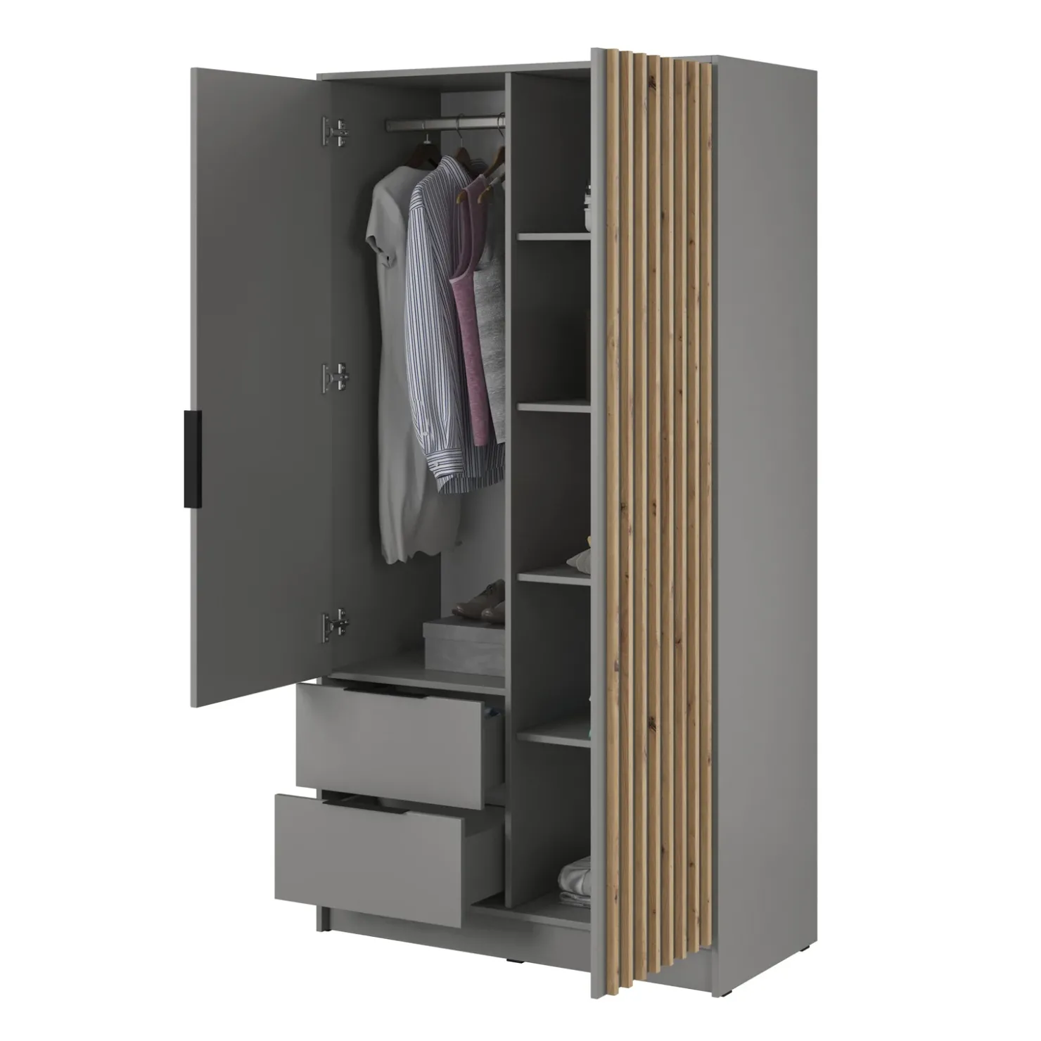Garnero Arredamenti Armadio 105x200h cm 2 ante con specchio quercia Miller Grigio Clearance