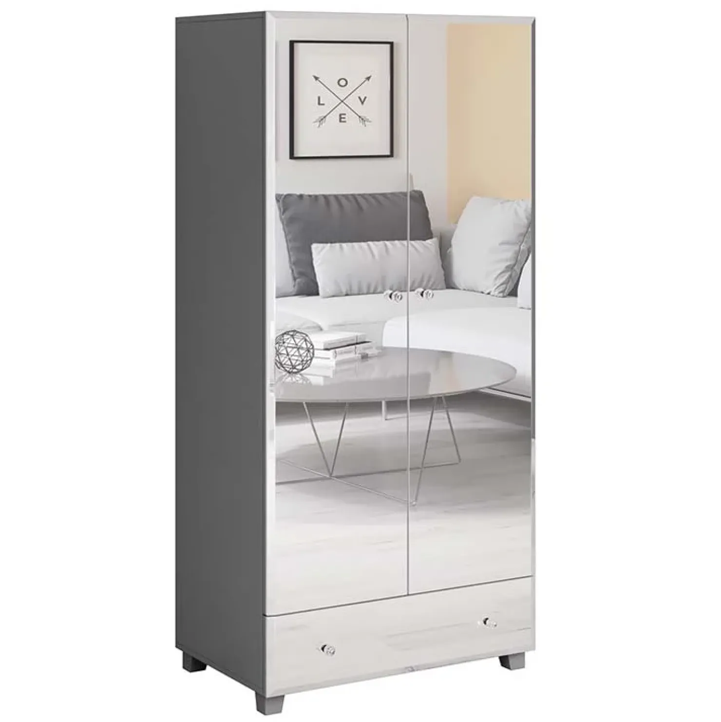 Armadio Selva 2 ante 1 cassetto grigio specchio