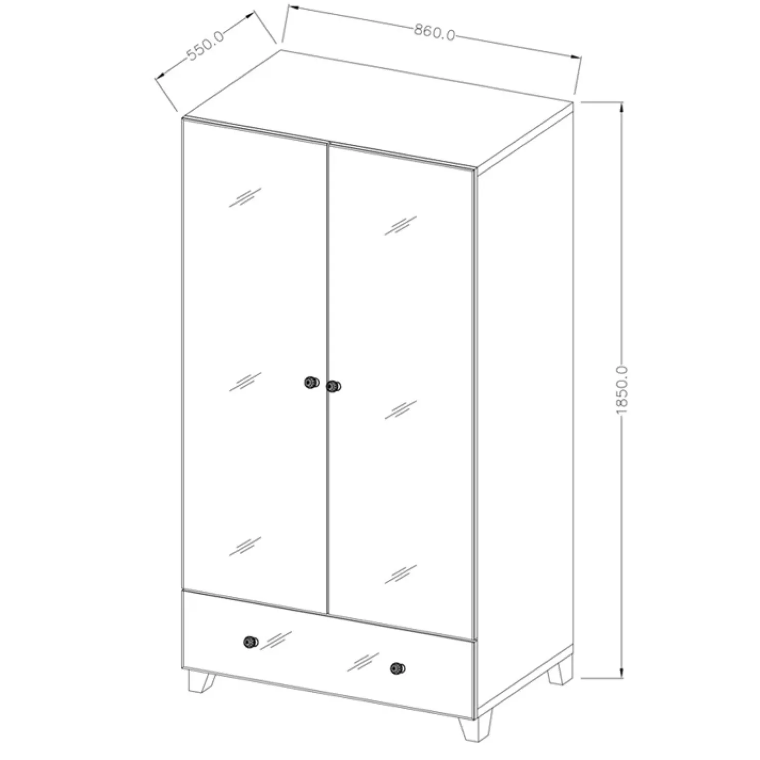 - Dimensioni totali: L.86 x H.185 x P.55 cm