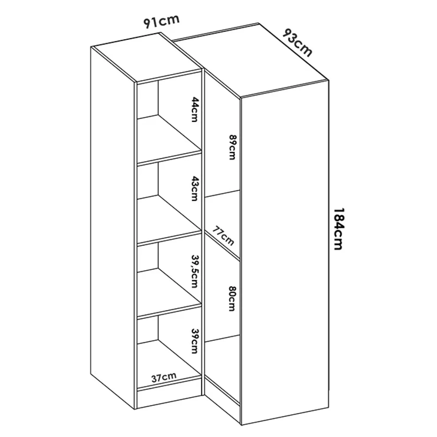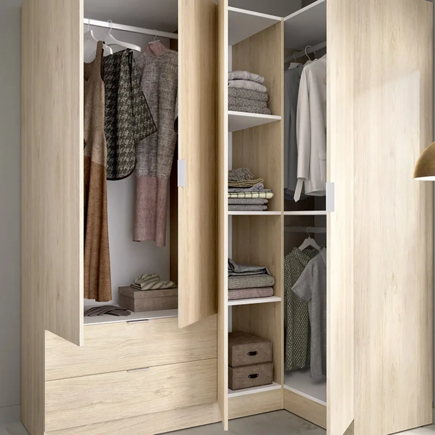 Armadio angolare 174x184cm con ante e cassetti legno rovere Juan, la soluzione ideale per completare l’arredamento della tua camera in modo funzionale, senza trascurare il design della tua camera!