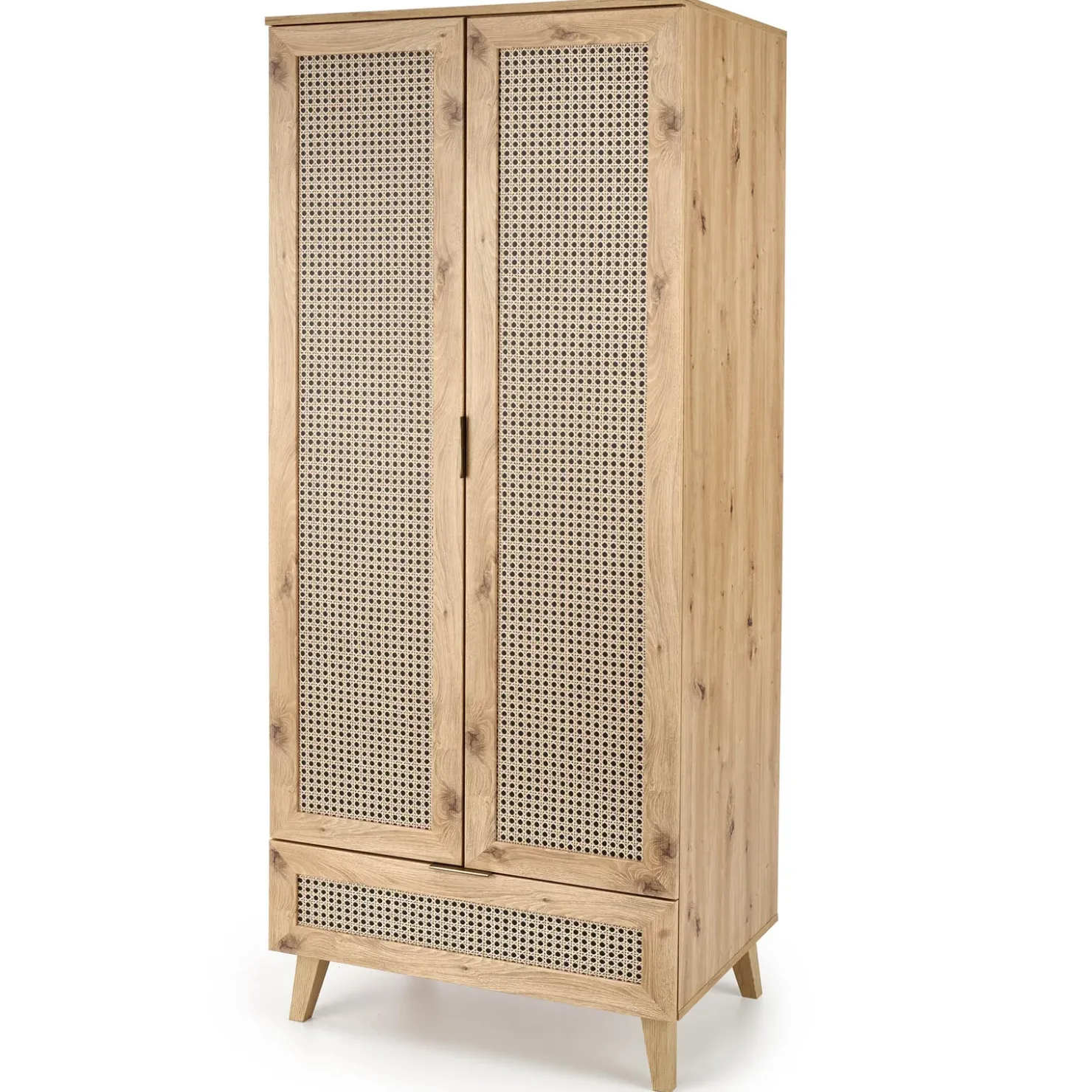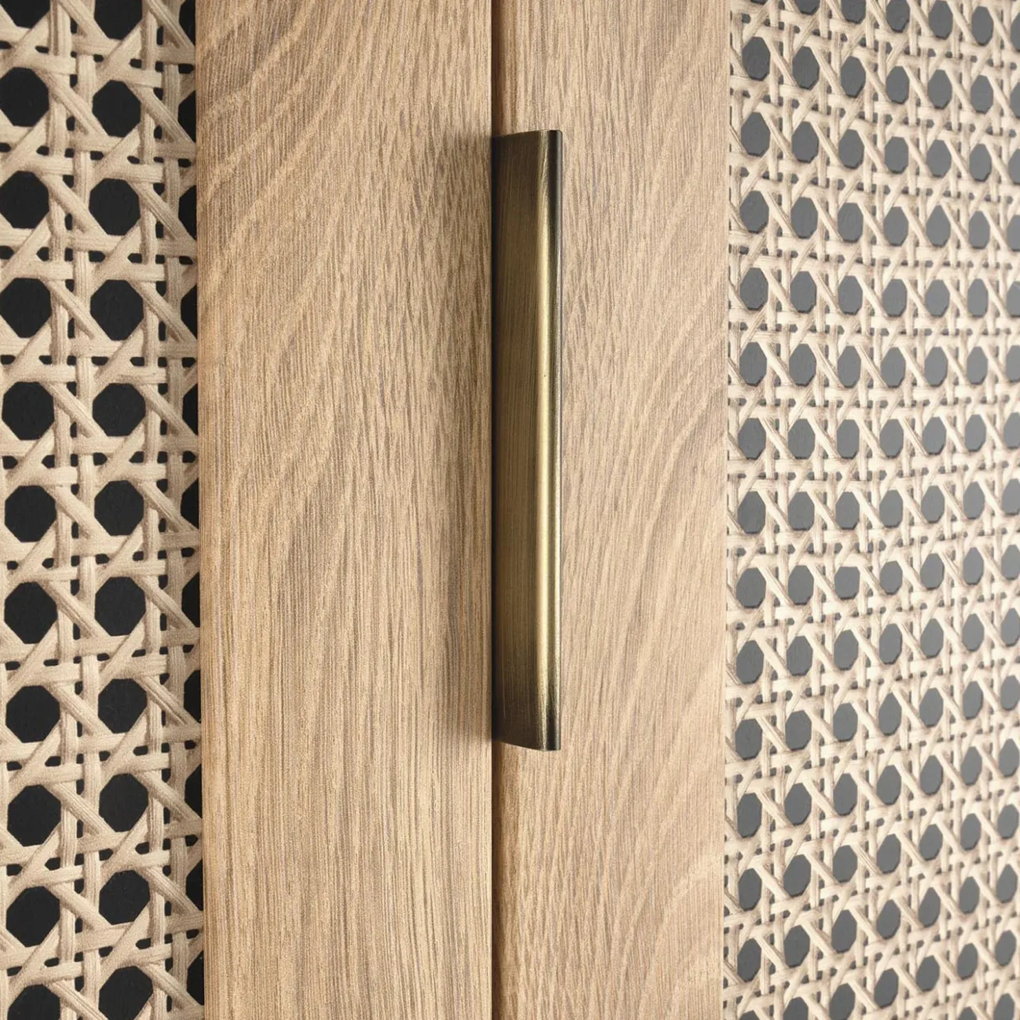 Pratico e dallo stile ricercato, l’armadio soggiorno Sombra arricchisce la collezione con un elemento contenitivo verticale, perfetto per mantenere l’ordine con eleganza. Realizzato con finitura rovere e nero, si adatta ad ambienti boho, scandinavi o moderni, portando calore e raffinatezza in soggiorno o in spazi multifunzionali.