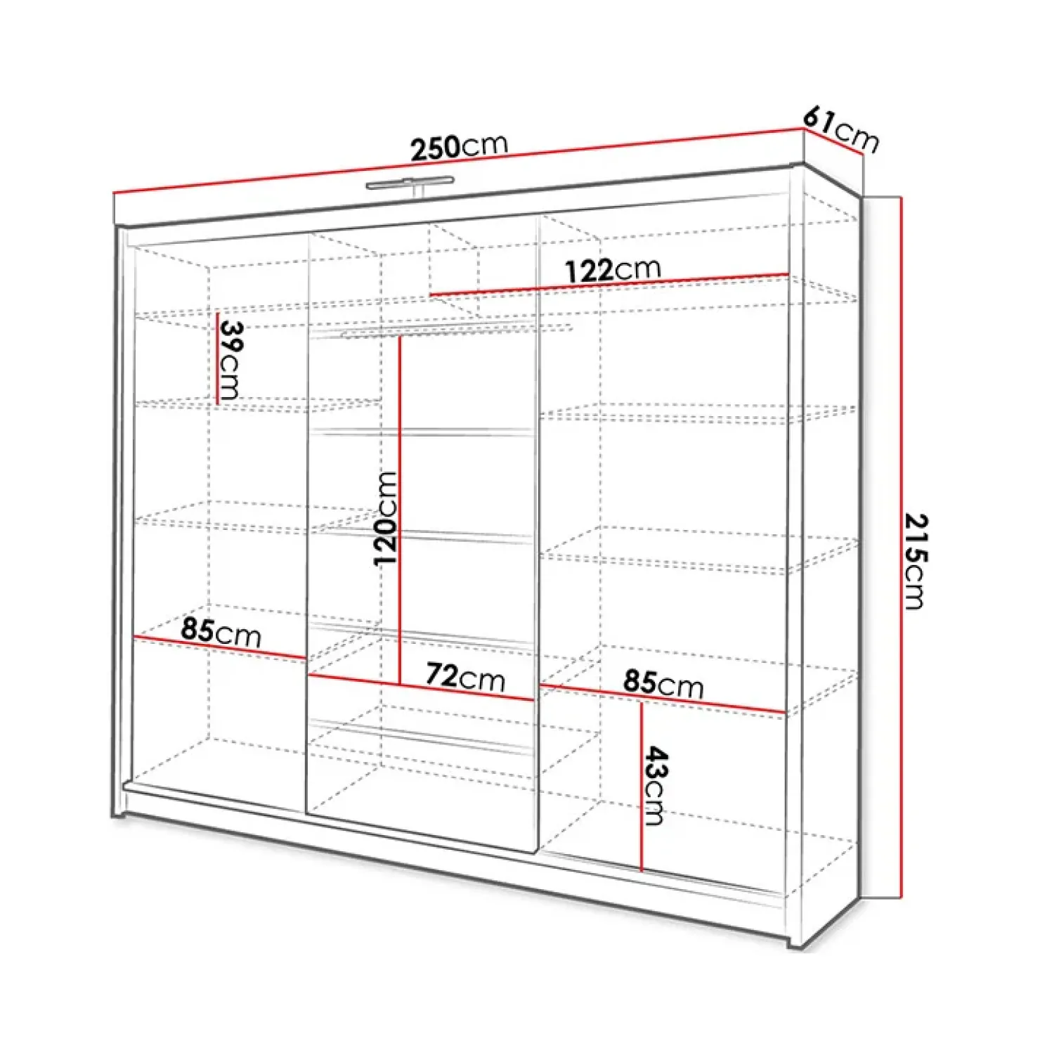 Garnero Arredamenti Armadio scorrevole 250x215h cm 3 ante moderno cassetti e led bianco Larissa Clearance
