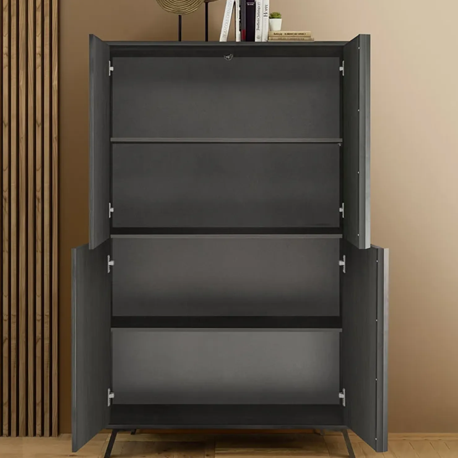Madia alta moderna 4 ante 104x174cm nero frassinato Tosca