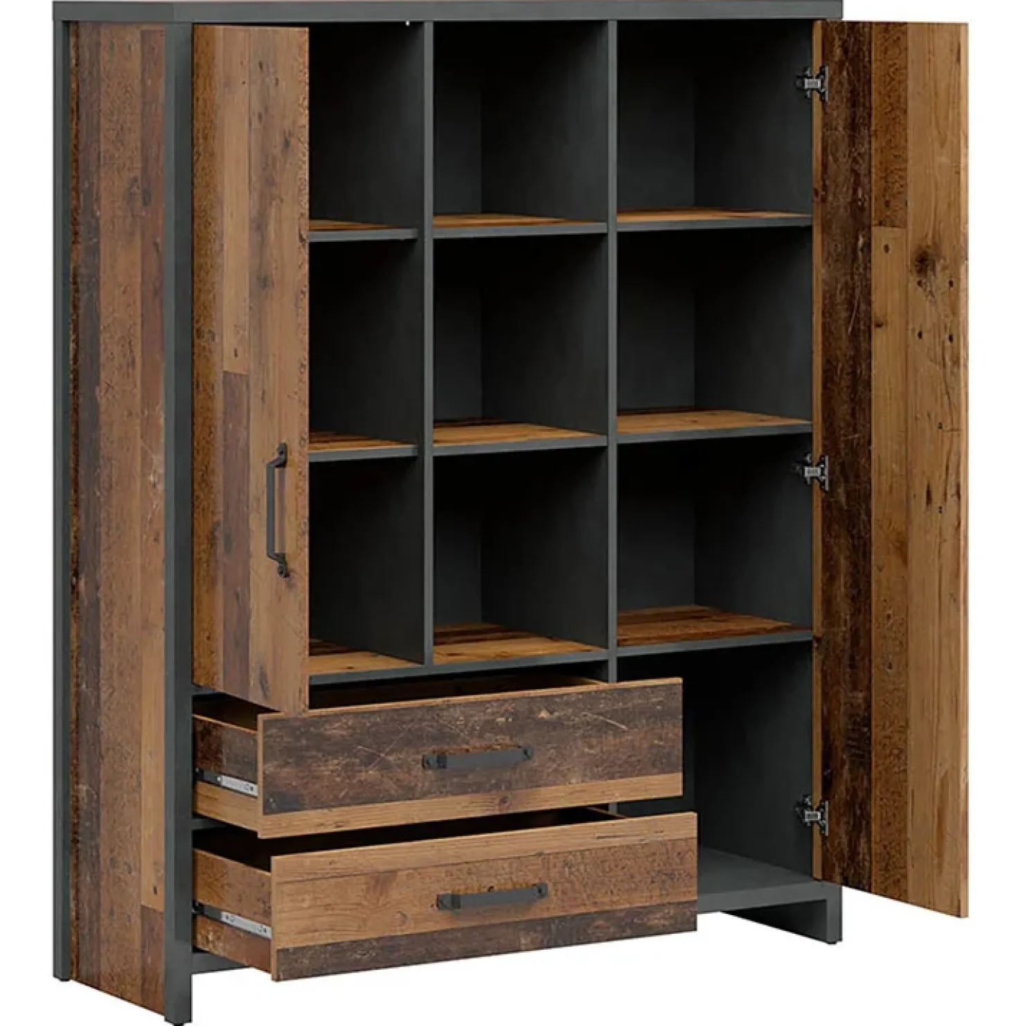Credenza alta 120x150cm 2 ante 2 cassetti stile soft rovere scuro nero Urbania: un armadio spazioso e dal design contemporaneo per il tuo guardaroba.