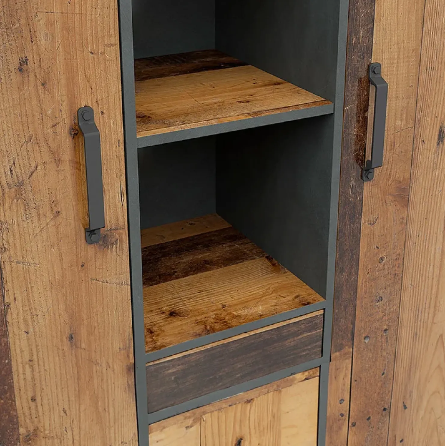 Garnero Arredamenti Armadio soggiorno 120x150h cm 2 ante 2 cassetti stile soft rovere scuro nero Urbania Discount