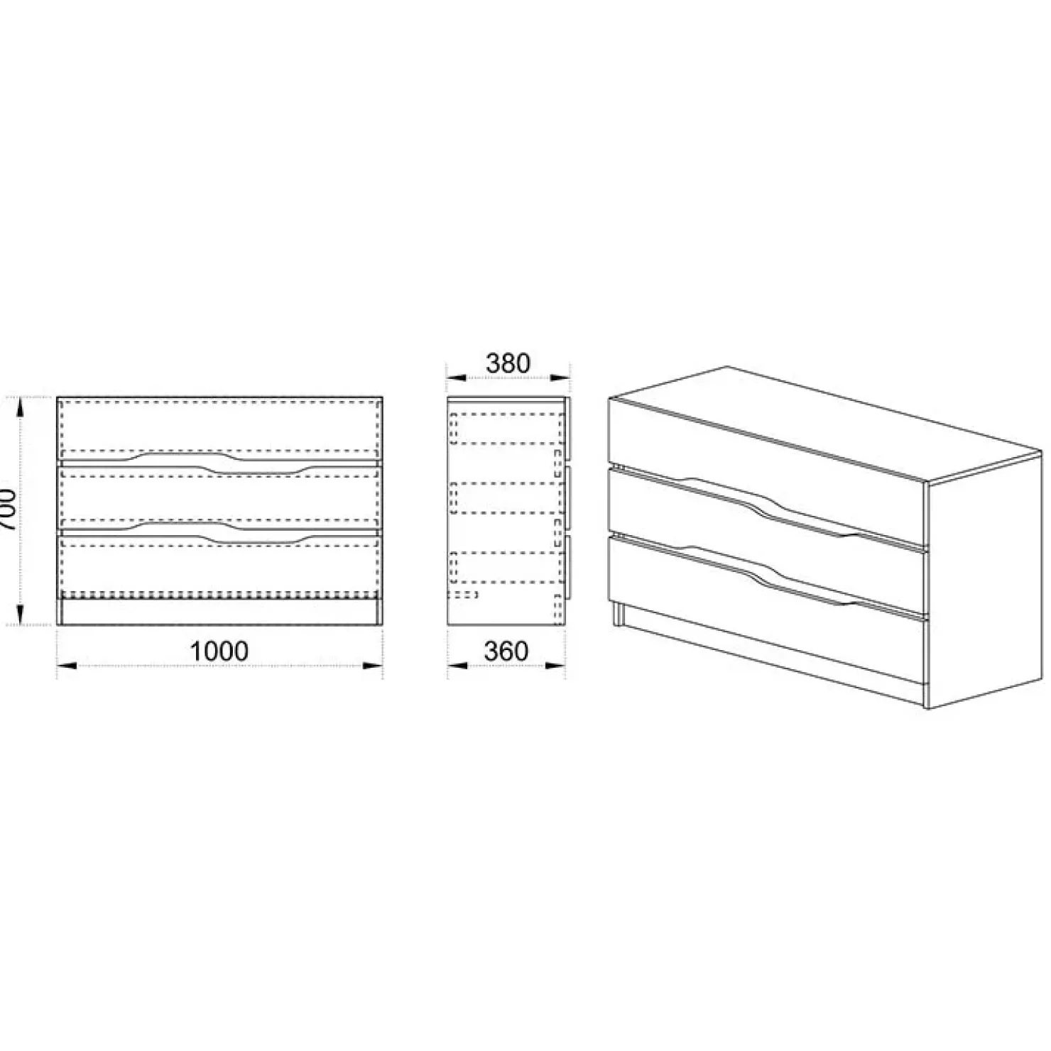- Dimensioni comò: L.100 x P.38 x H.70 cm