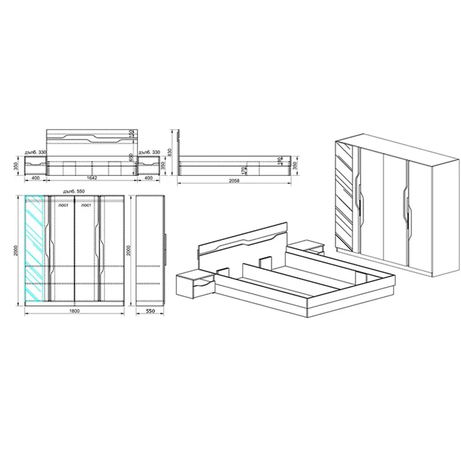 - Dimensioni armadio: L.180 x P.55 x H.200 cm