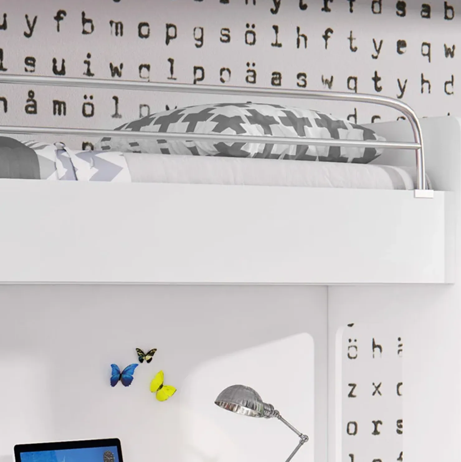 Cameretta per bambini 1 letto soppalco bianco grigio lucido Simone Gihome®: la soluzione ideale per ogni bambino. I colori ad effetto lucido la rendono moderna e spaziosa!