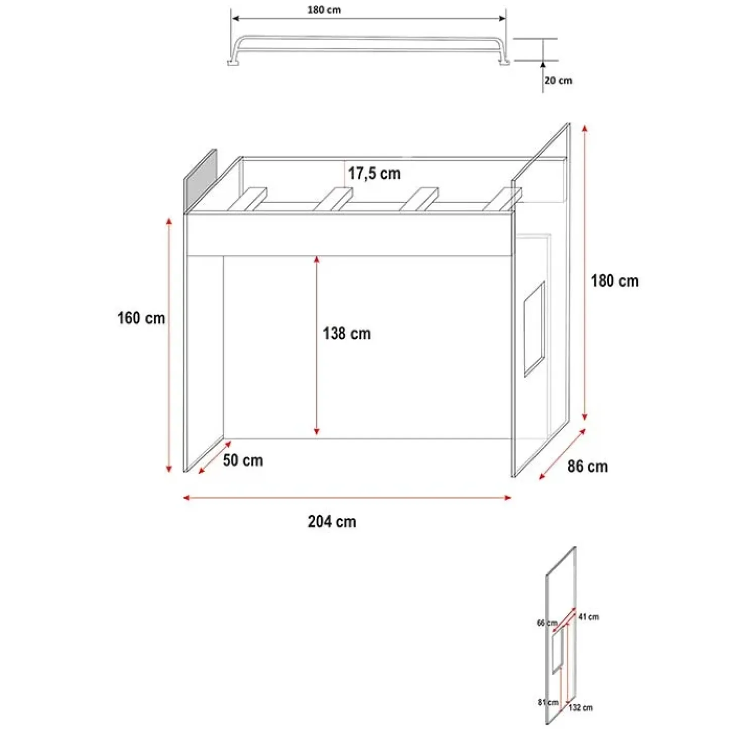 - dimensioni totali: L.254 x P.120 x H.180 cm