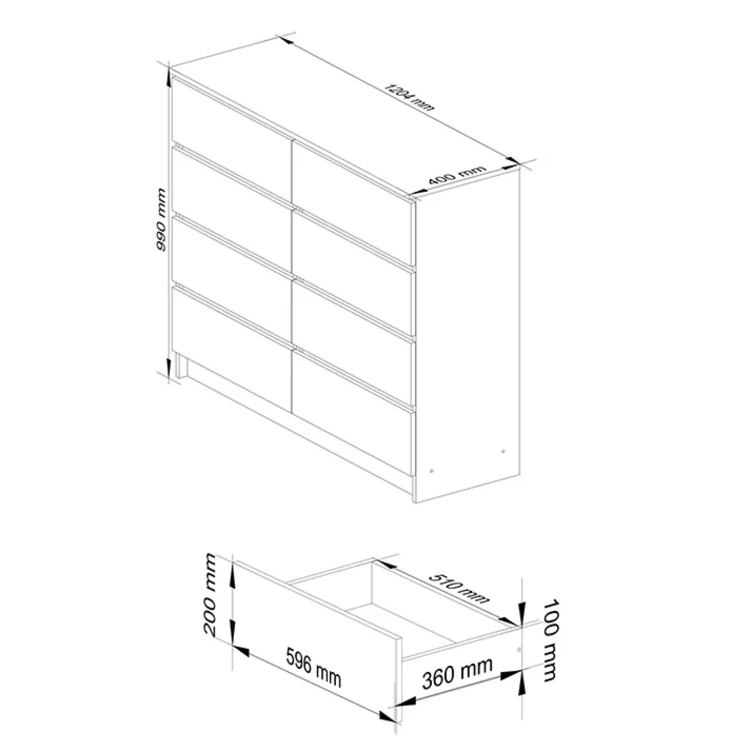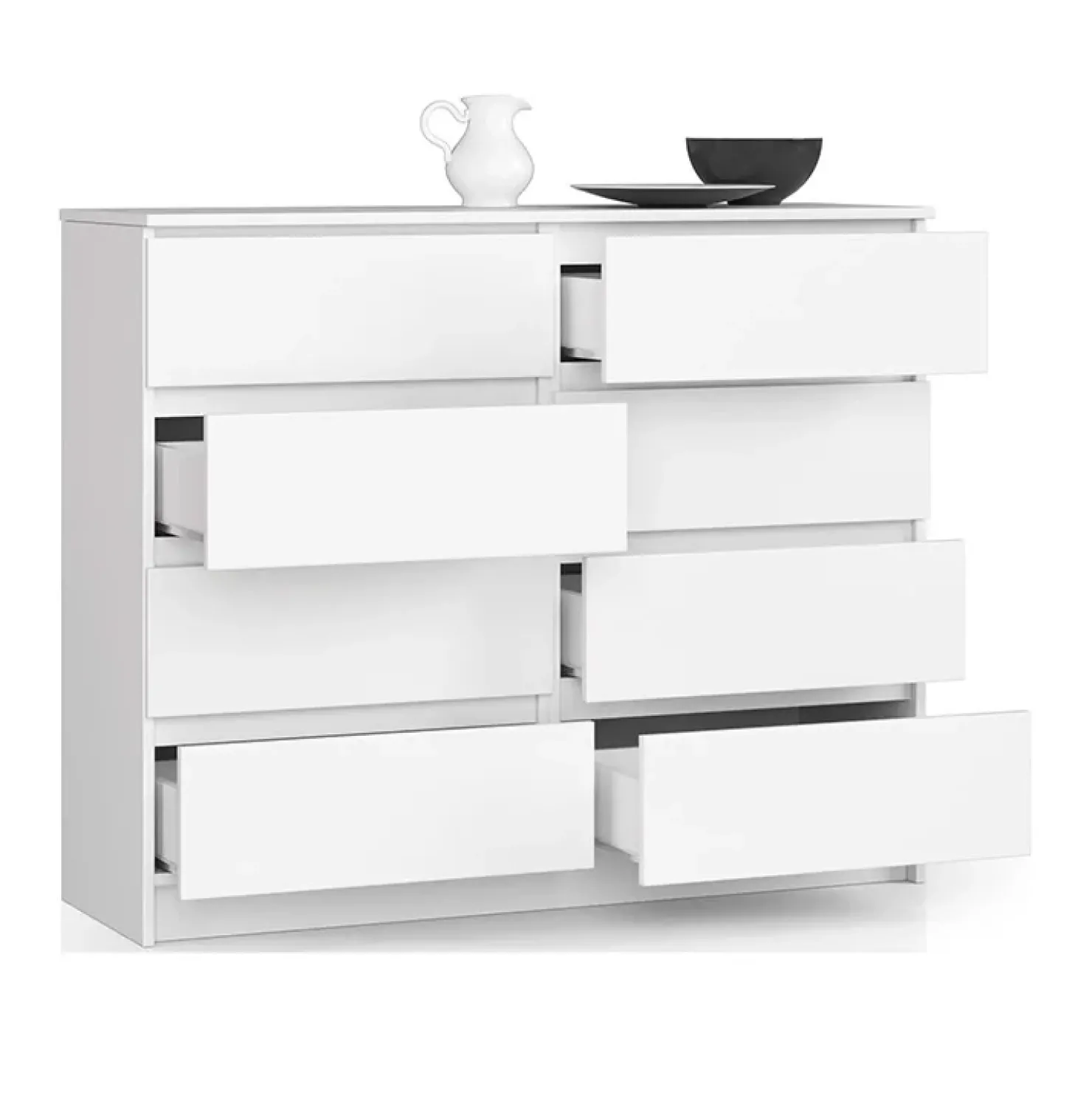 Cassettiera 120x100cm moderna 8 cassetti bianco Living, moderna e spaziosa si adatta perfettamente ad ogni stile della tua camera.
