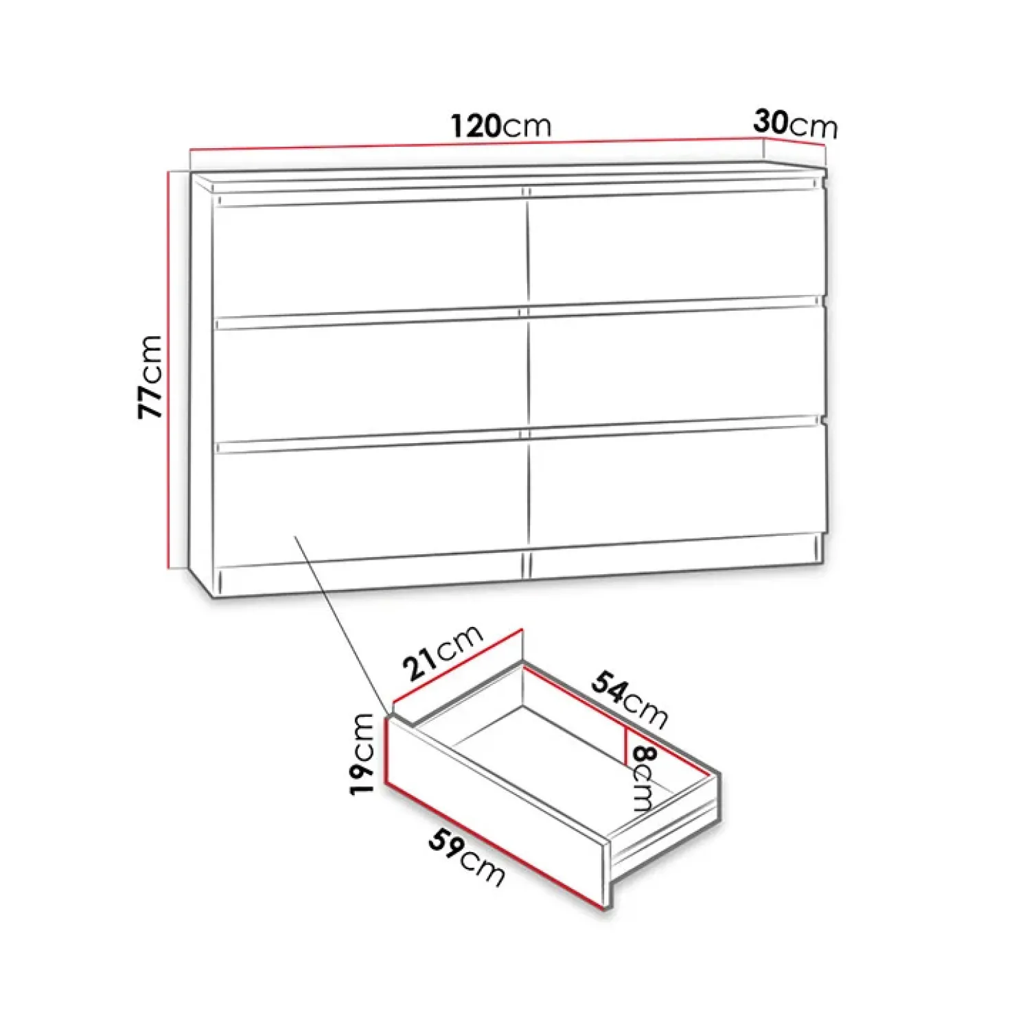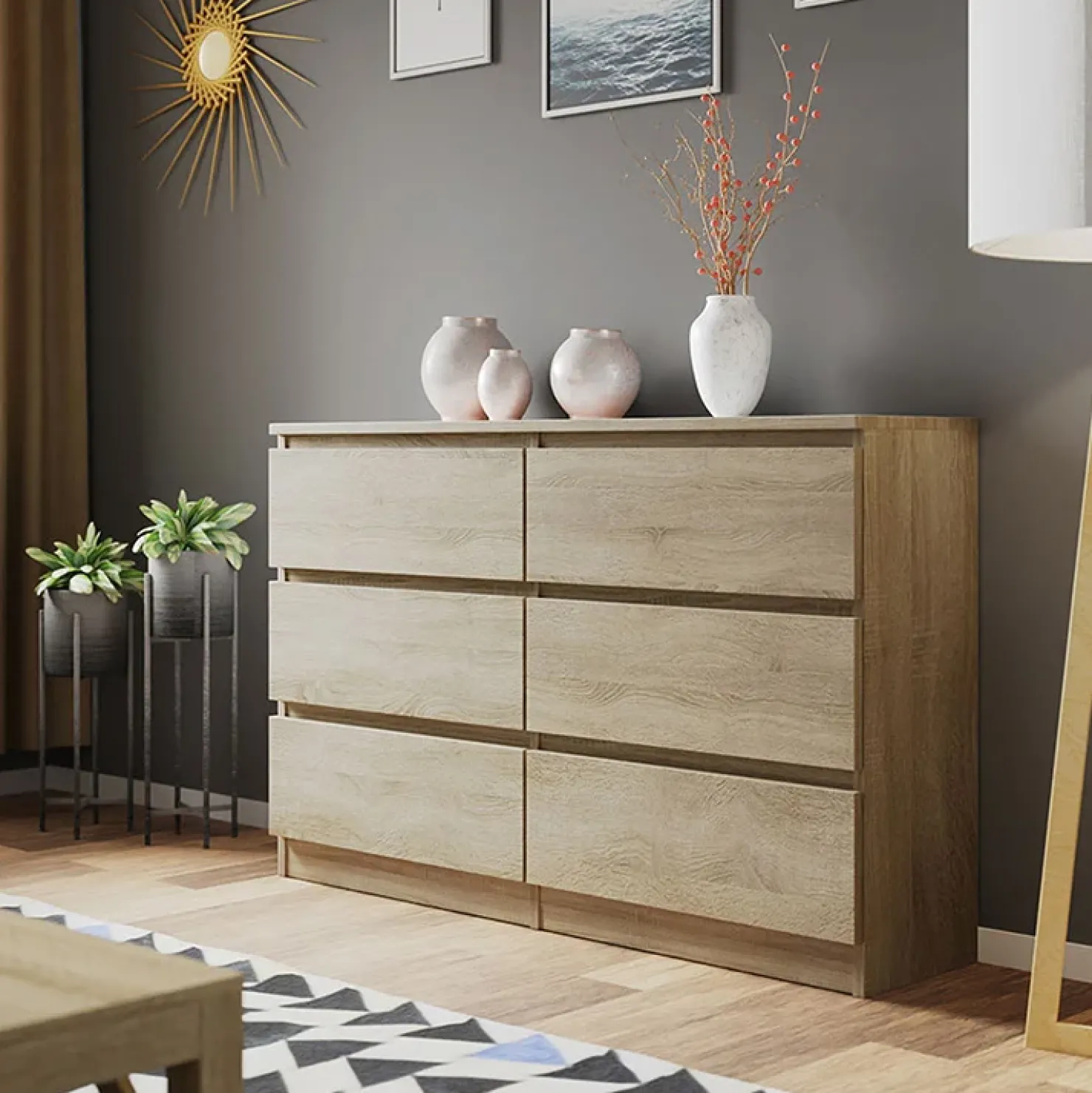 Cassettiera moderna 120x77cm 6 cassetti rovere Rotterdam, il suo stile nordico ti conquisterà.