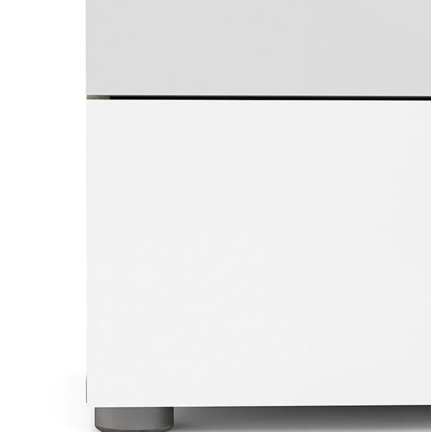 Cassettiera credenza moderna Betty Gihome ® disponibile in bianco/rovere. Dalla forma razionale e contemporanea con maniglie lineari grigie.