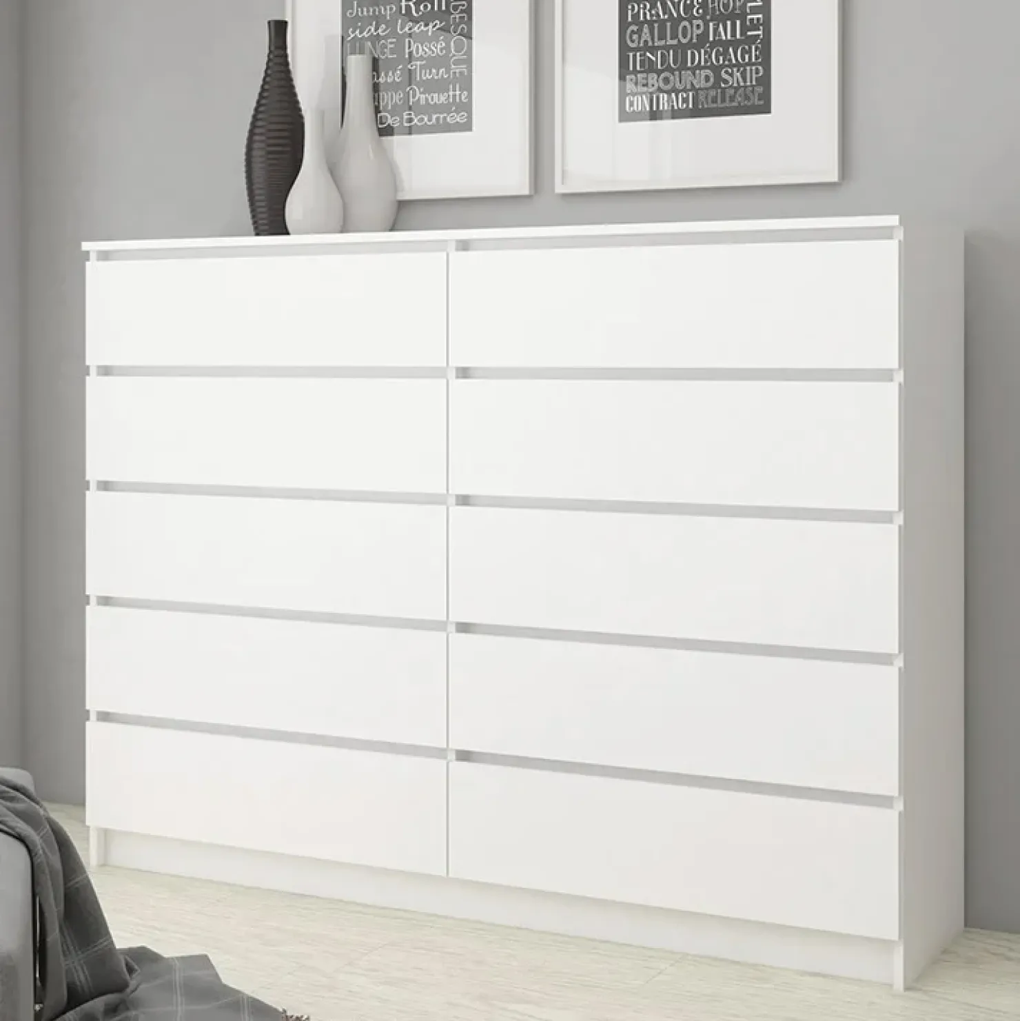 Cassettiera 160x120cm moderna 10 cassetti bianco Living, si adatterà perfettamente ad ogni stanza della tua casa. Riordina la tua biancheria sfuttando i suoi ampi cassetti.