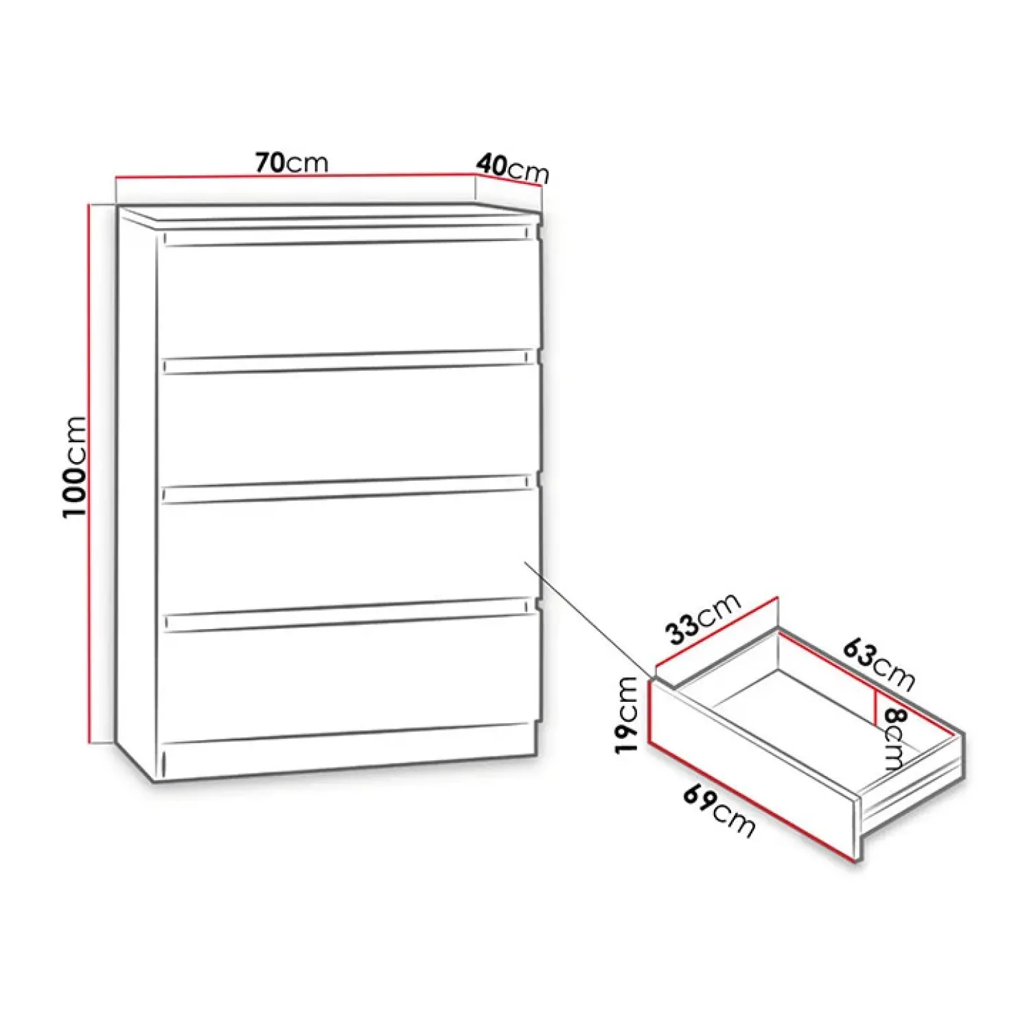 Cassettiera moderna 70x100cm 4 cassetti nero Rotterdam