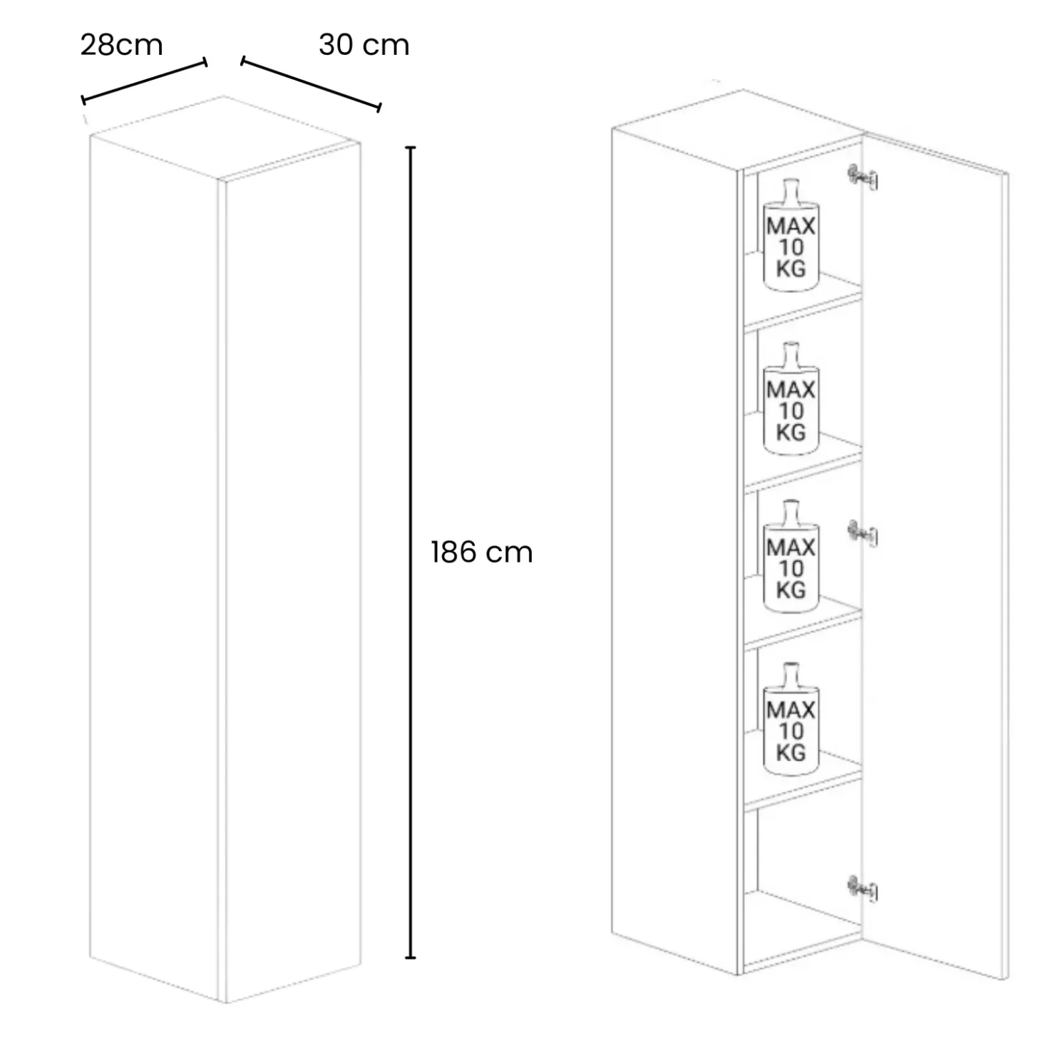 | Dimensioni | L.28 x H.186 x P.30 cm |