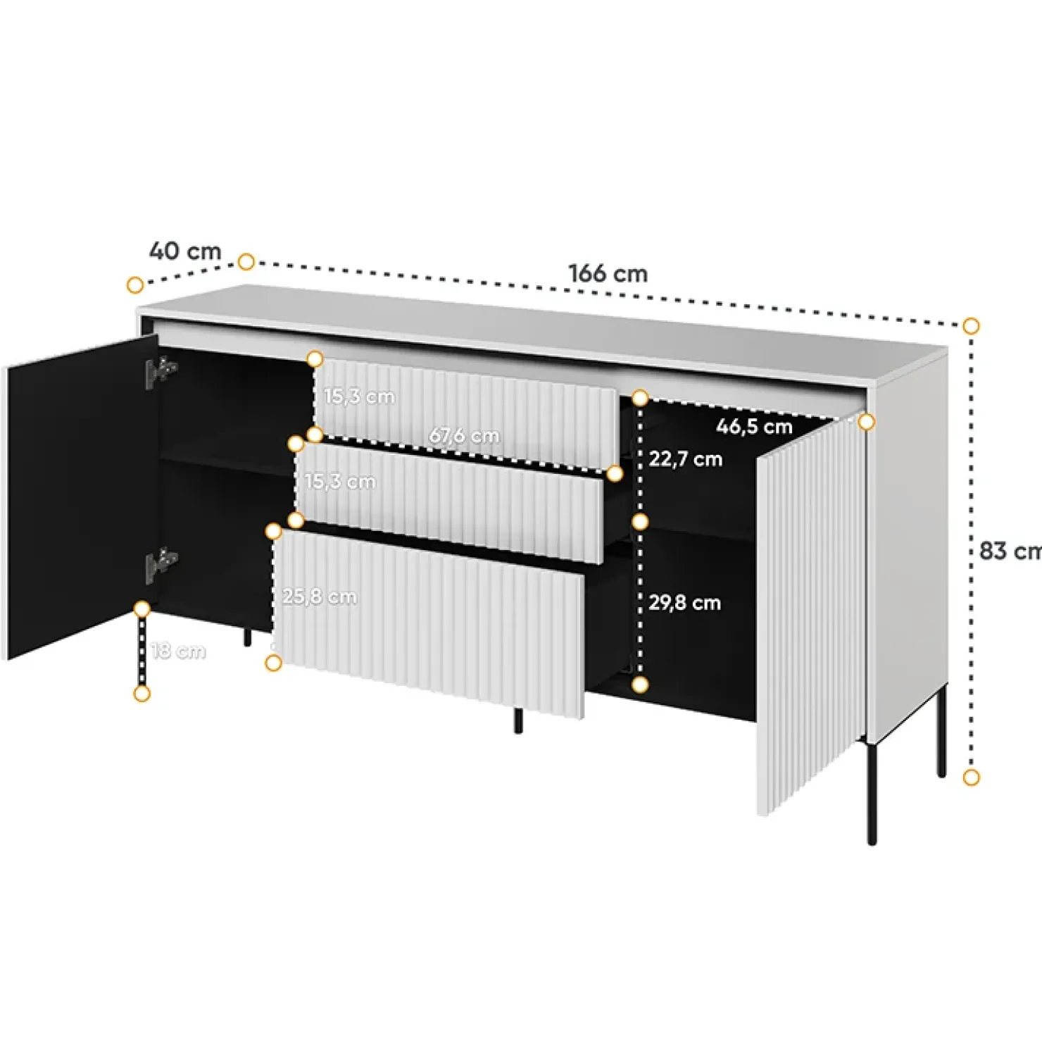 Con dimensioni di 136 cm di larghezza e 91 cm di altezza, questo comò offre una soluzione versatile per l’organizzazione degli effetti personali. La struttura è dotata di tre ampi cassetti e un armadio con una mensola, il tutto nascosto dietro un’unica porta. Questa configurazione ben progettata consente di riporre oggetti di varie dimensioni, mantenendo l’ordine e ottimizzando lo spazio disponibile.