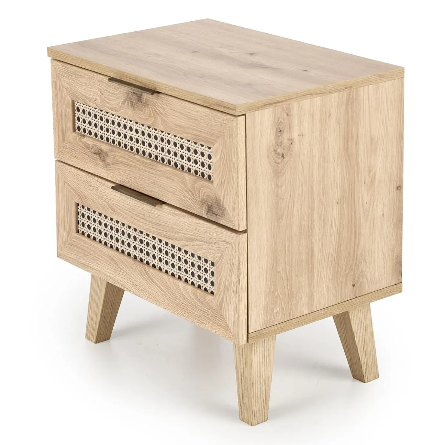 Compatto e funzionale, il comodino Sombra completa la collezione con un elemento essenziale pensato per la zona notte. Realizzato con l’elegante finitura rovere e nero, si inserisce perfettamente in contesti boho, scandinavi o moderni, portando coerenza e raffinatezza accanto al letto.