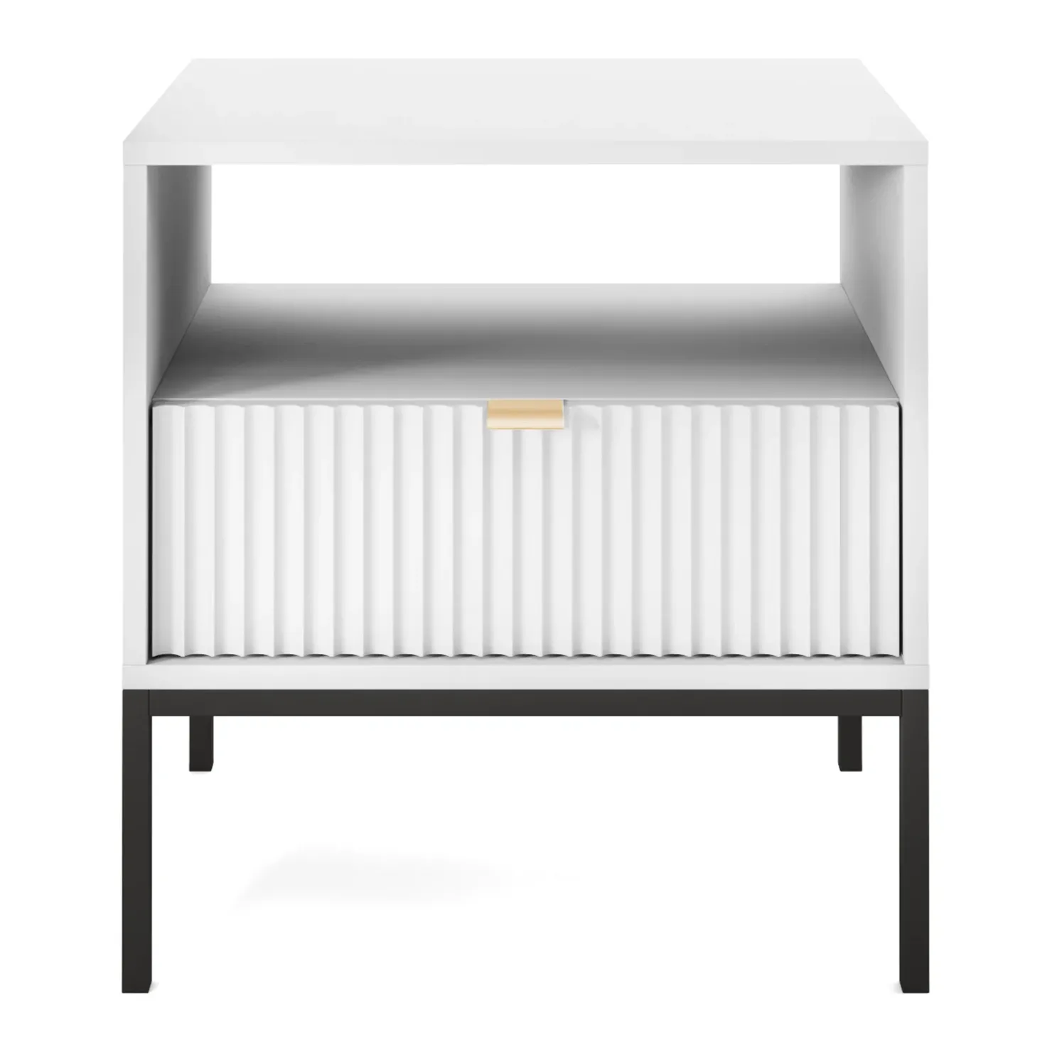 Il comodino Alisa è composto da 1 cassetto con maniglia color oro con un frontale dal design unico. Offre lo spazio necessario a quegli oggetti che hai bisogno di tenere a portata di mano.