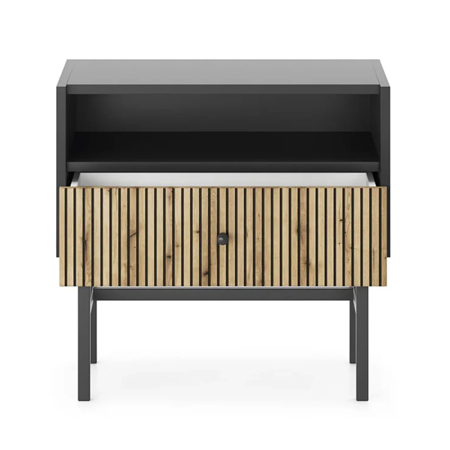 Comodino con 1 cassetto 55x52h cm moderno nero rovere cannettato Iulia