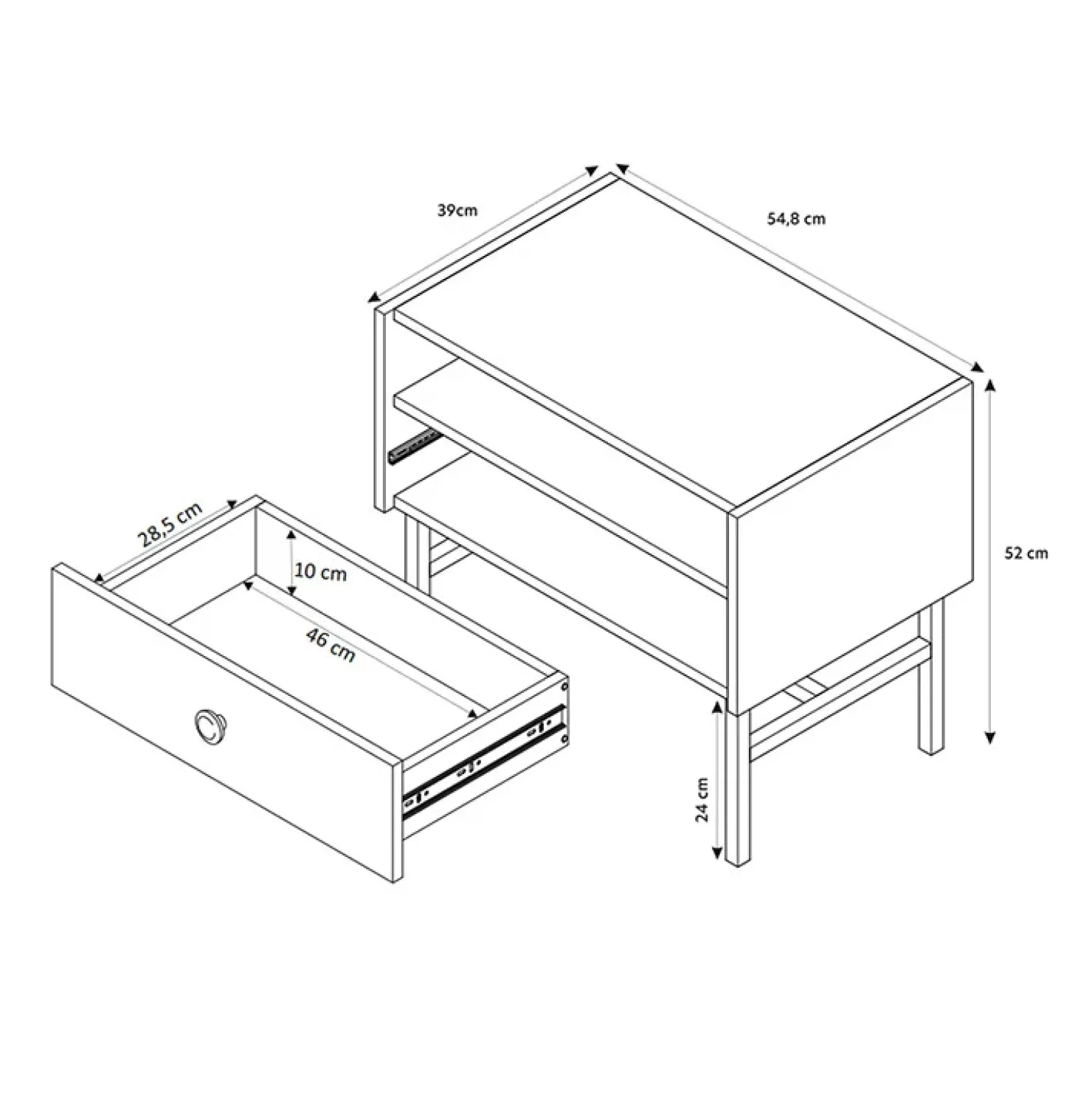 | Dimensioni cassetto | L.46 x H.10 x P.28,5 cm |