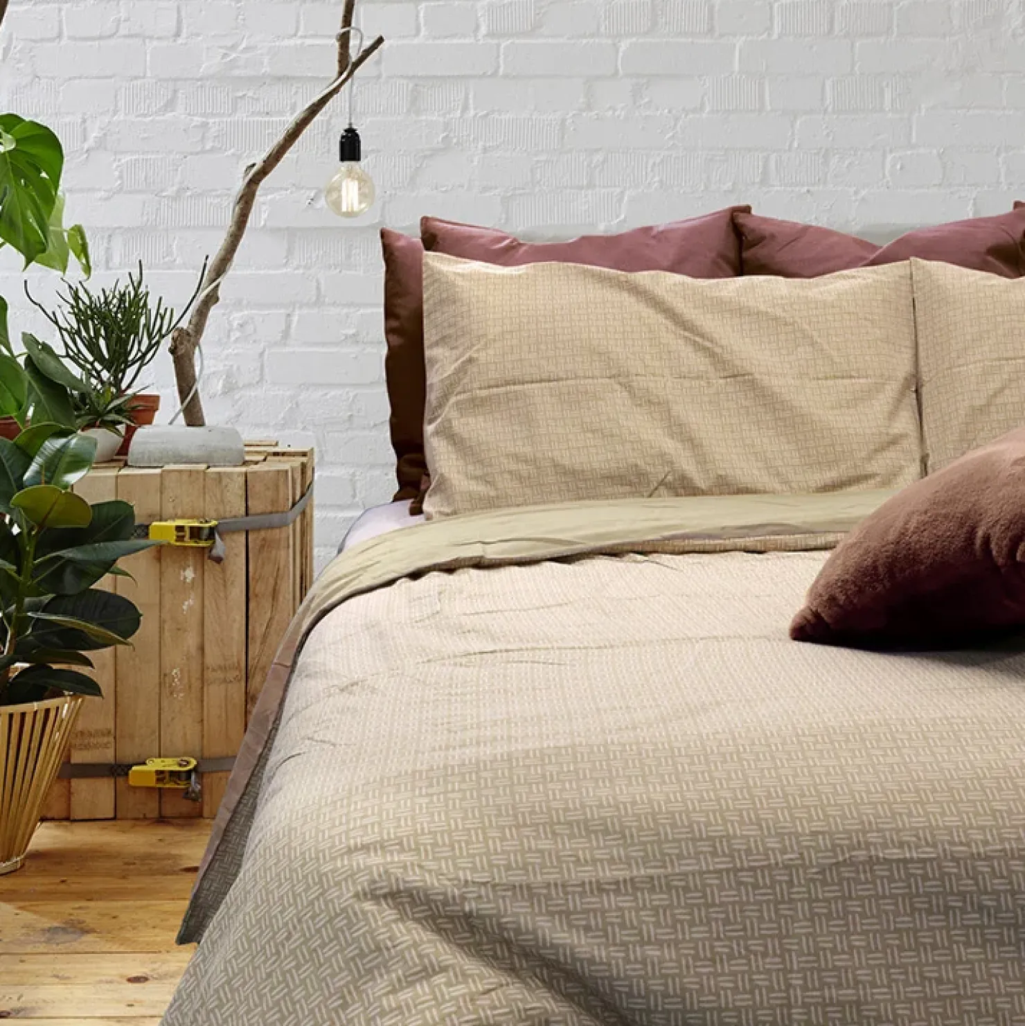 Copripiumino + 2 federe letto matrimoniale in cotone 250x200cm beige Nabib