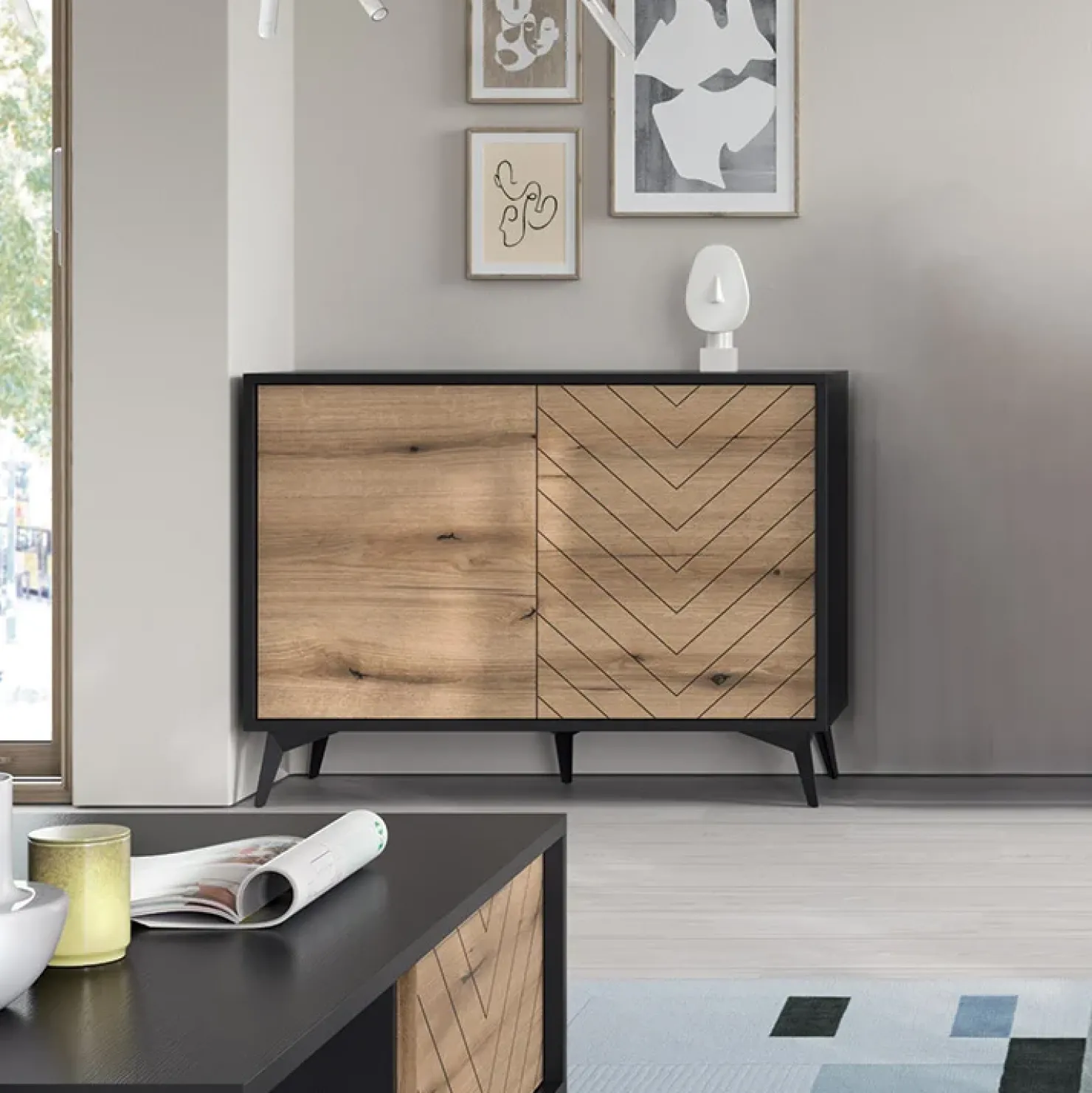 Credenza moderna soggiorno 104x77cm quercia nero 2 ante Becca