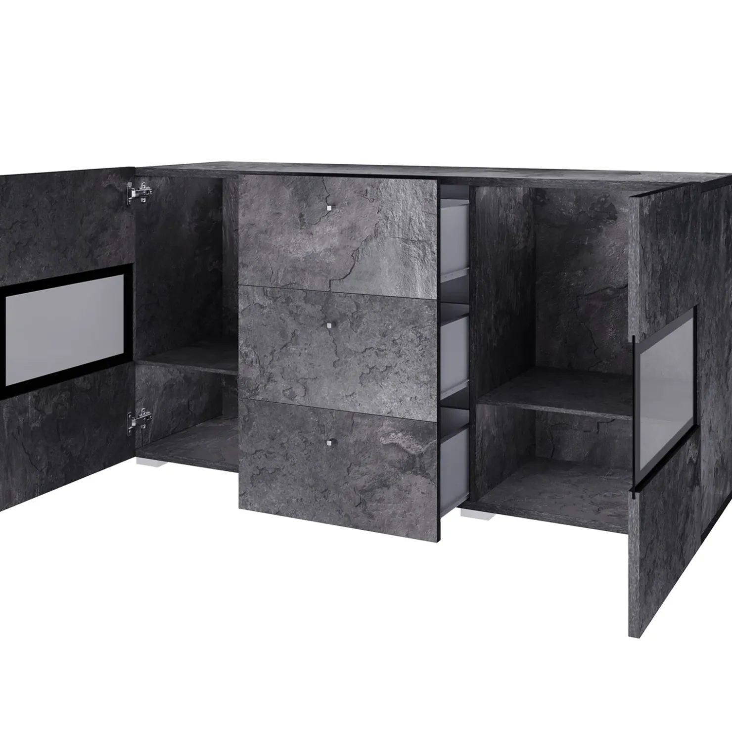 Garnero Arredamenti Credenza 132x70h cm 2 ante 3 cassetti moderna nero Emotion Gihome® Ossido New