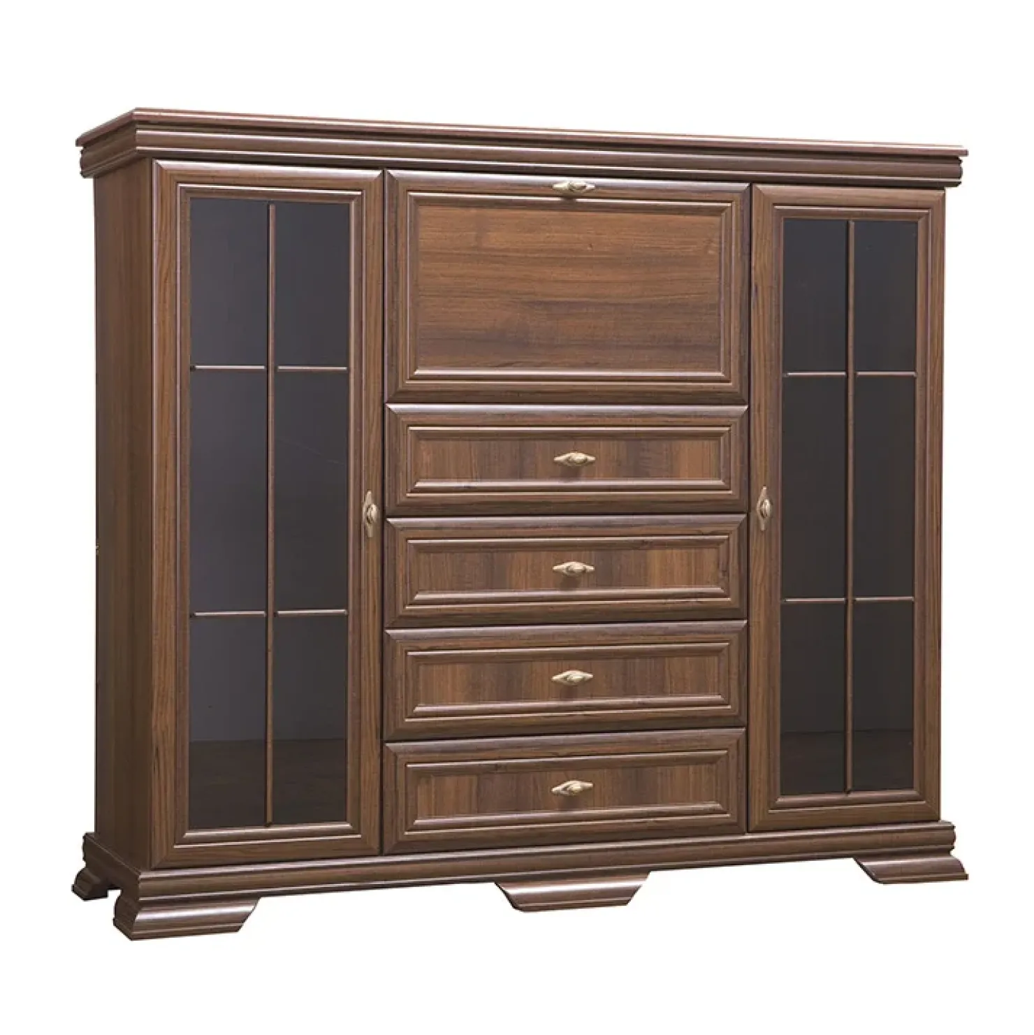 Credenza 158x136cm 2 ante con vetrina 4 cassetti quercia Kelly