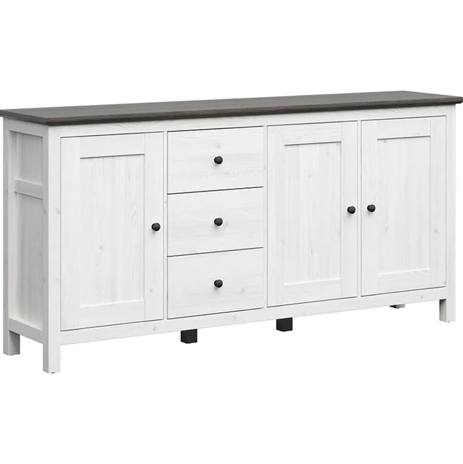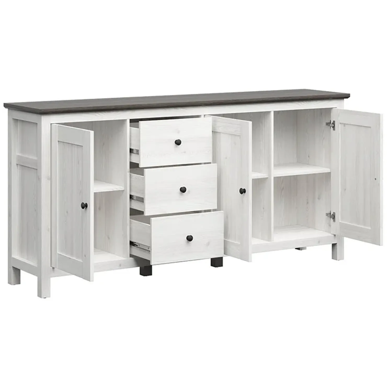 Garnero Arredamenti Credenza 199x96h cm 3 ante 3 cassetti arte povera pino bianco frassinato grafite Holga Bianco Frassinato – Grafite Outlet