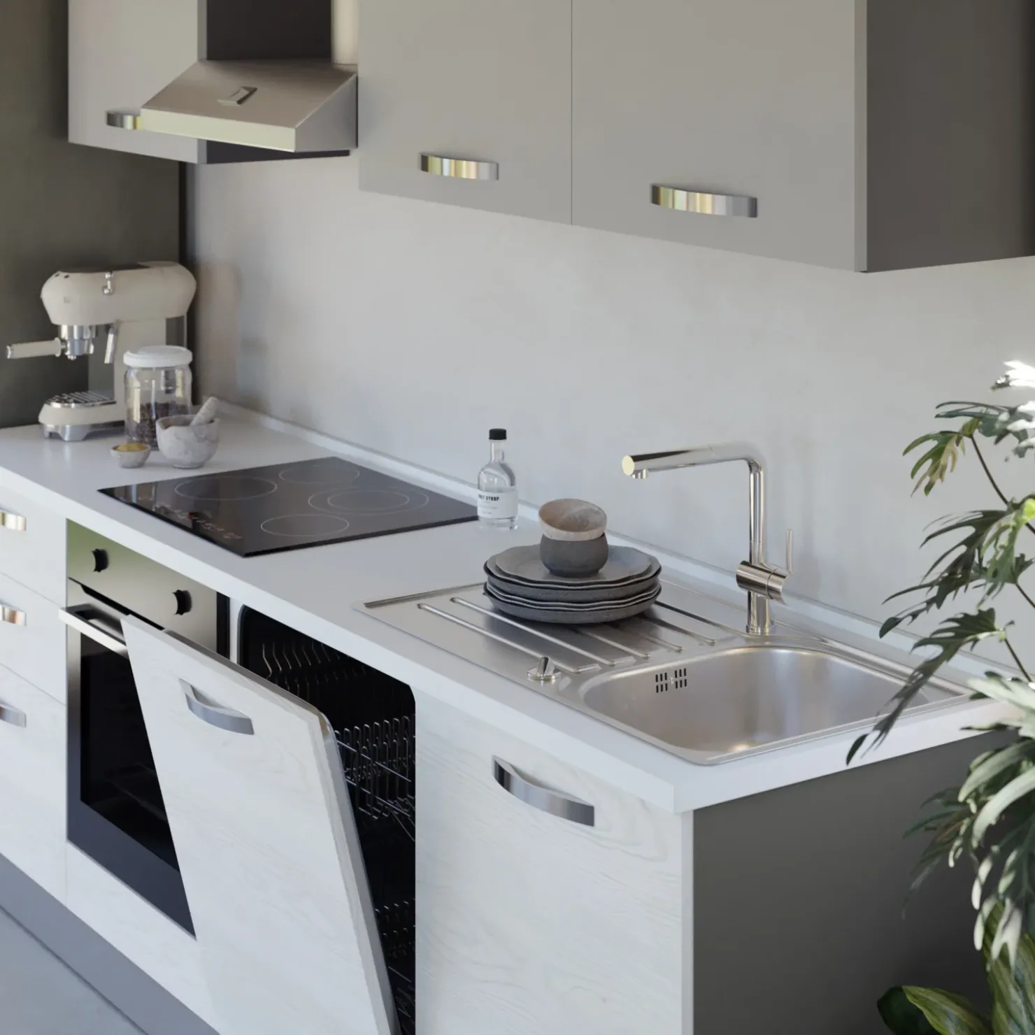 Con Cookart, puoi completare la tua cucina abbinando una cappa, un lavello a una vasca con gocciolatoio (sarà necessario selezionare l’orientamento della vasca, destra o sinistra), un frigorifero a libera installazione e un forno a incasso, per ottenere un ambiente coordinato e funzionale. Ogni dettaglio è studiato per rendere l’esperienza in cucina confortevole e pratica.