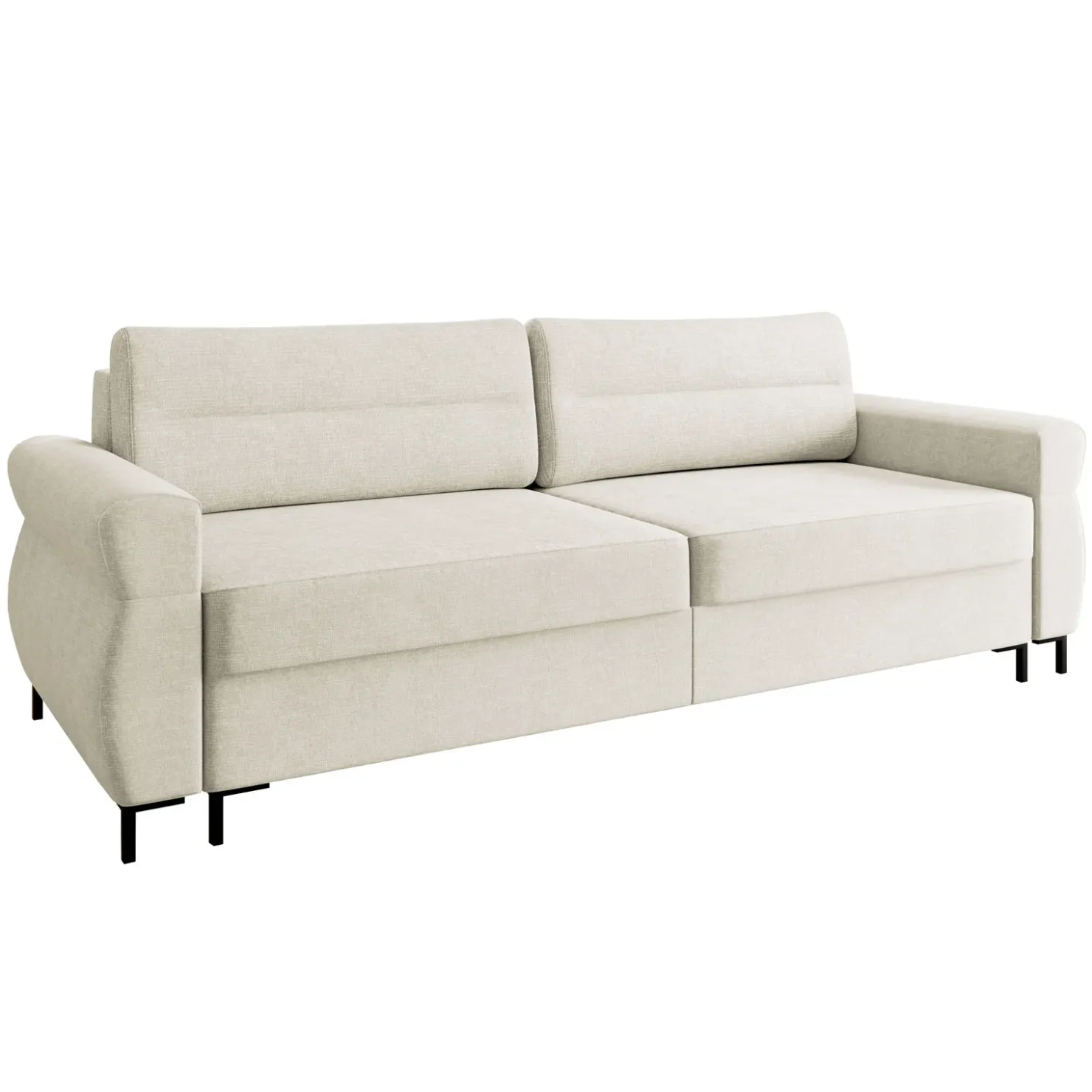 I piedini neri dal design essenziale slanciano la struttura, aggiungendo un tocco contemporaneo che valorizza le linee pulite del divano. Velissa offre il massimo comfort grazie allo schienale reclinabile, che permette di trasformare il divano in un comodo letto in pochi semplici gesti, ideale per ospitare amici e familiari.