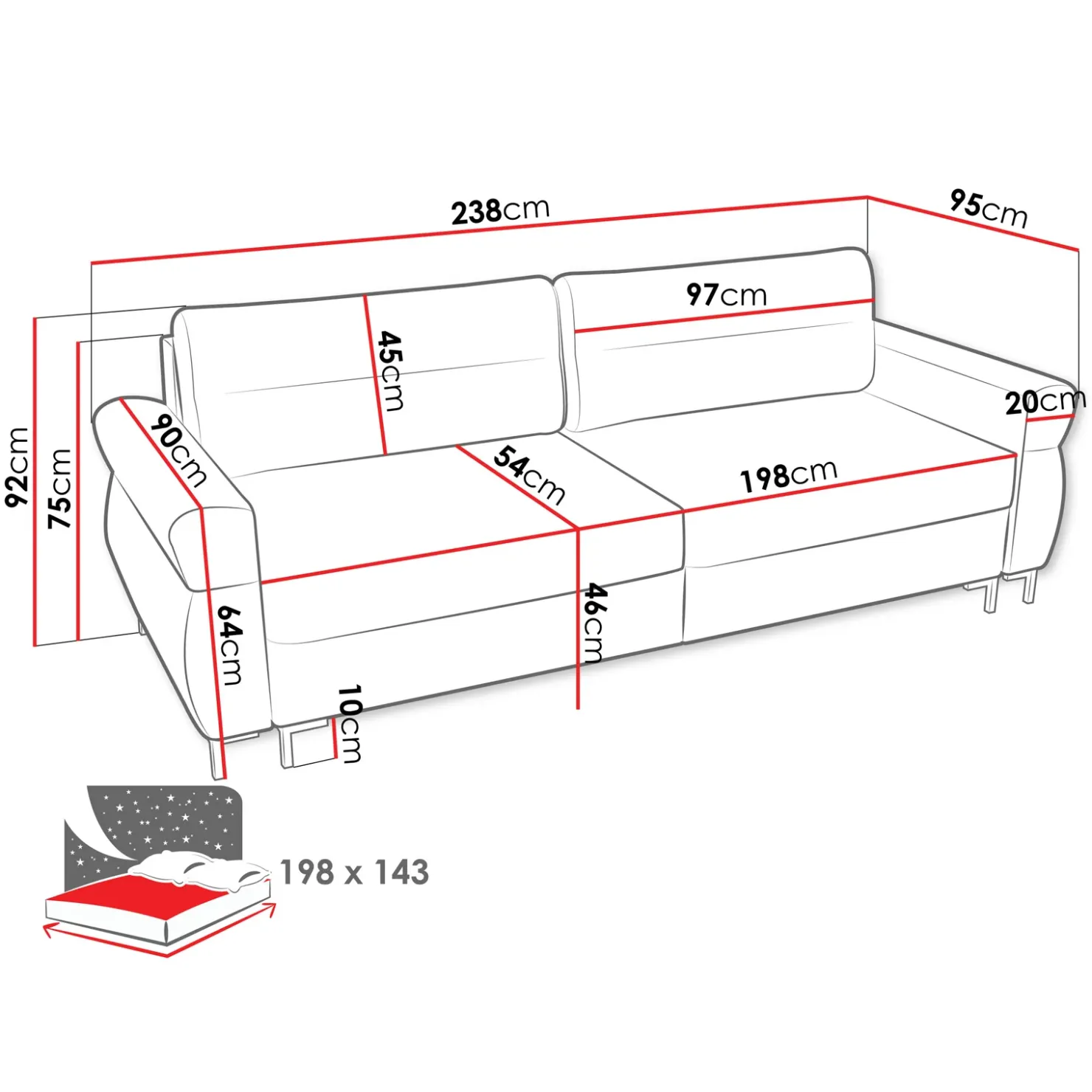 | Dimensioni superficie letto | 198 x 143 cm |
