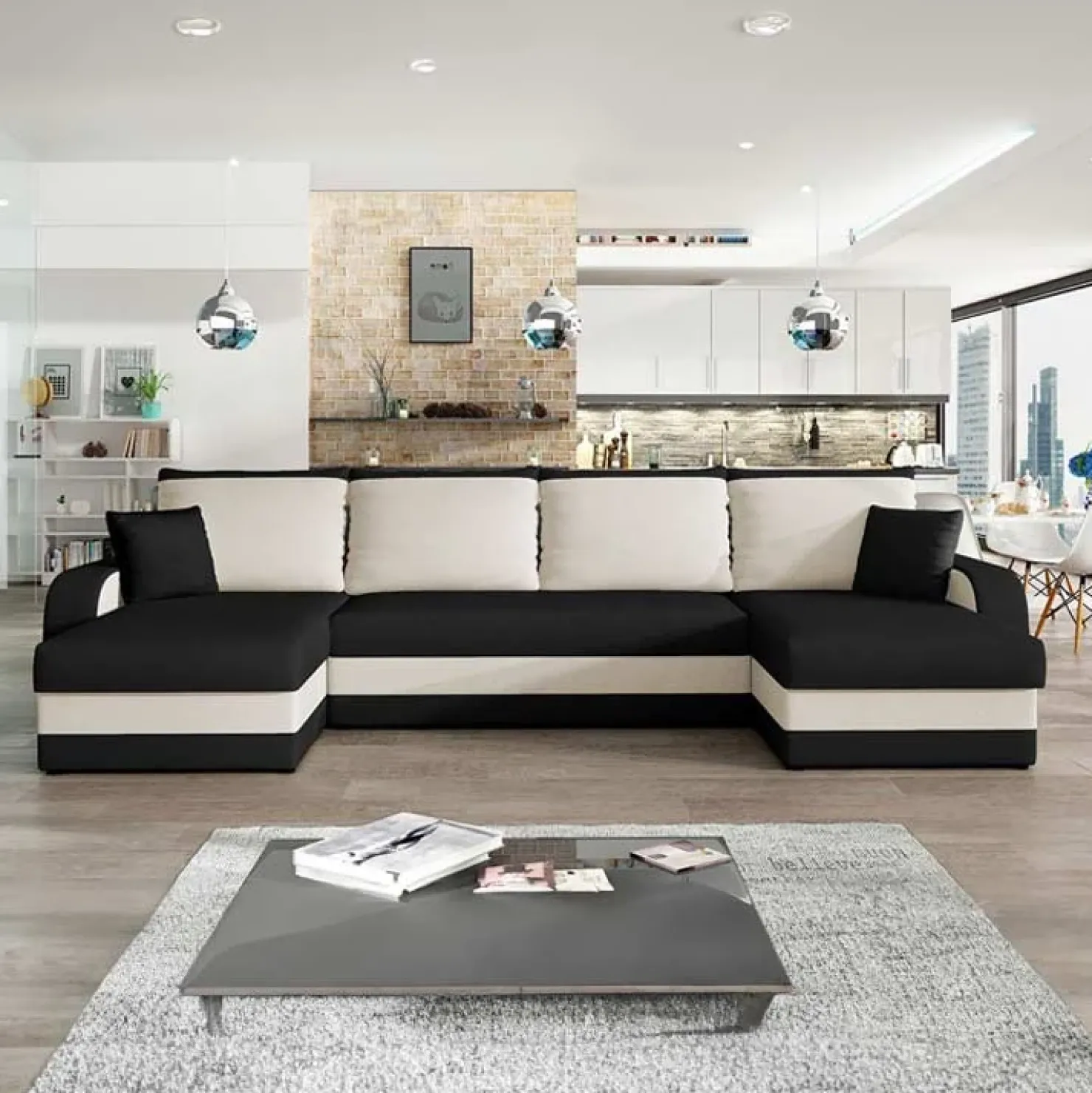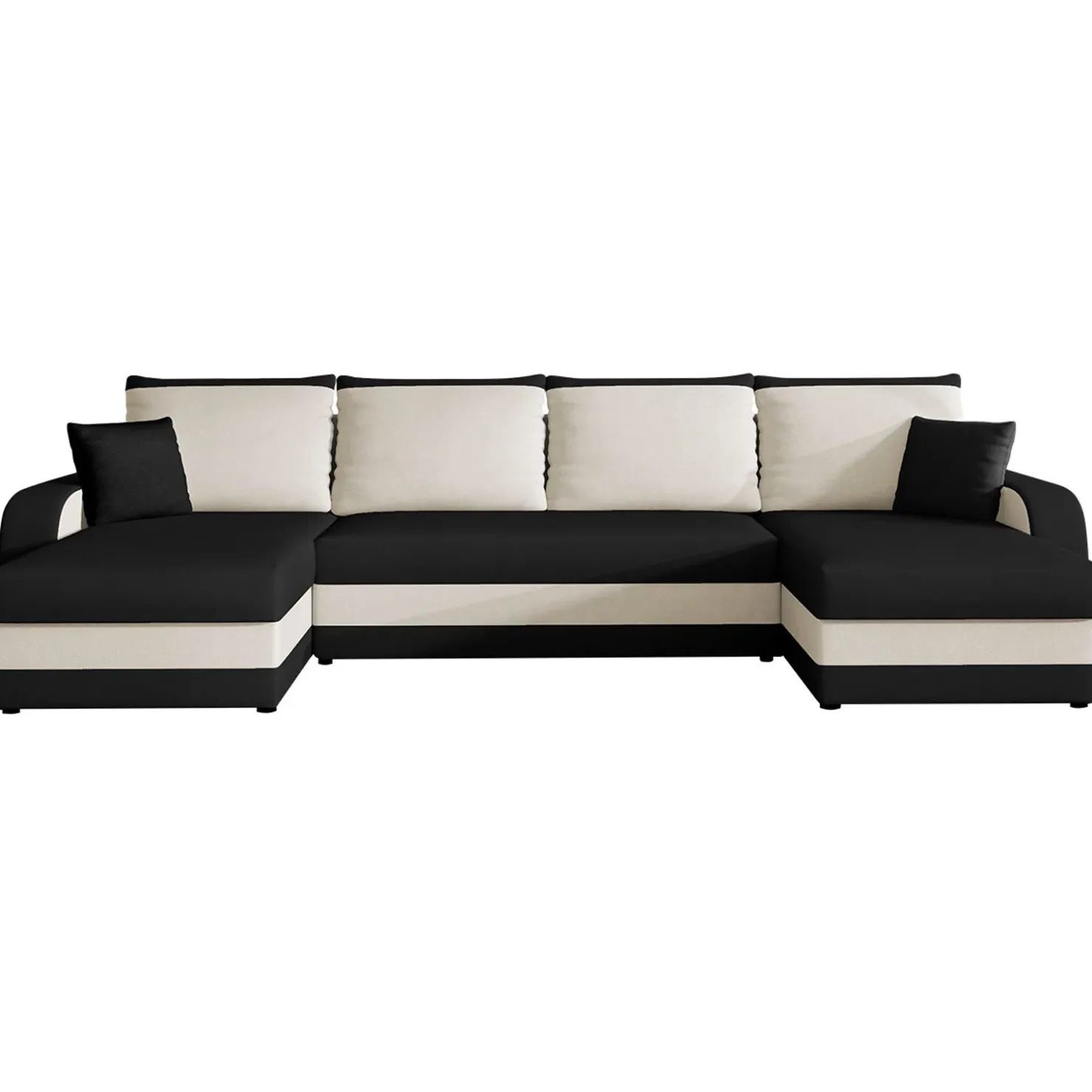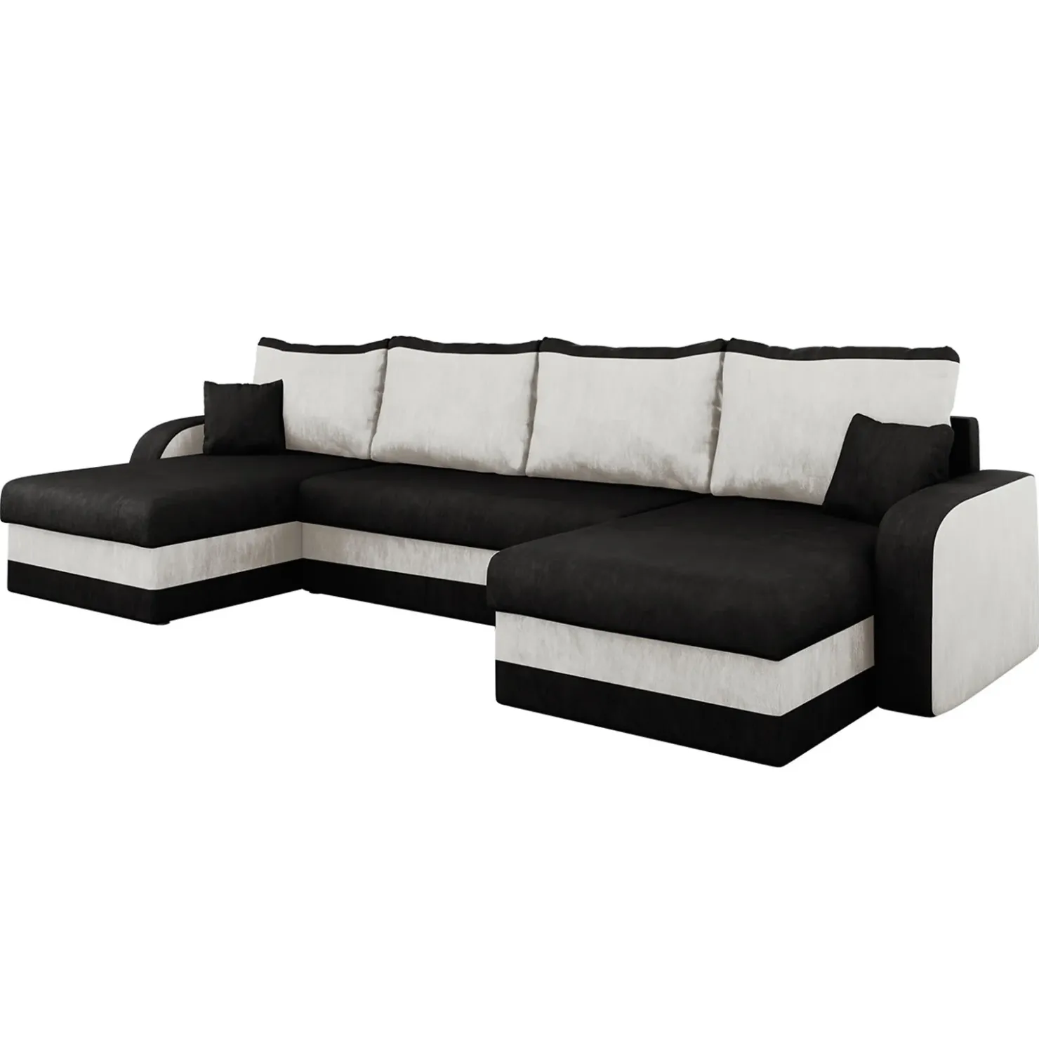 Divano letto 4 posti contenitore 304cm nero écru Assunta, spazioso e confortevole per un relax assicurato.