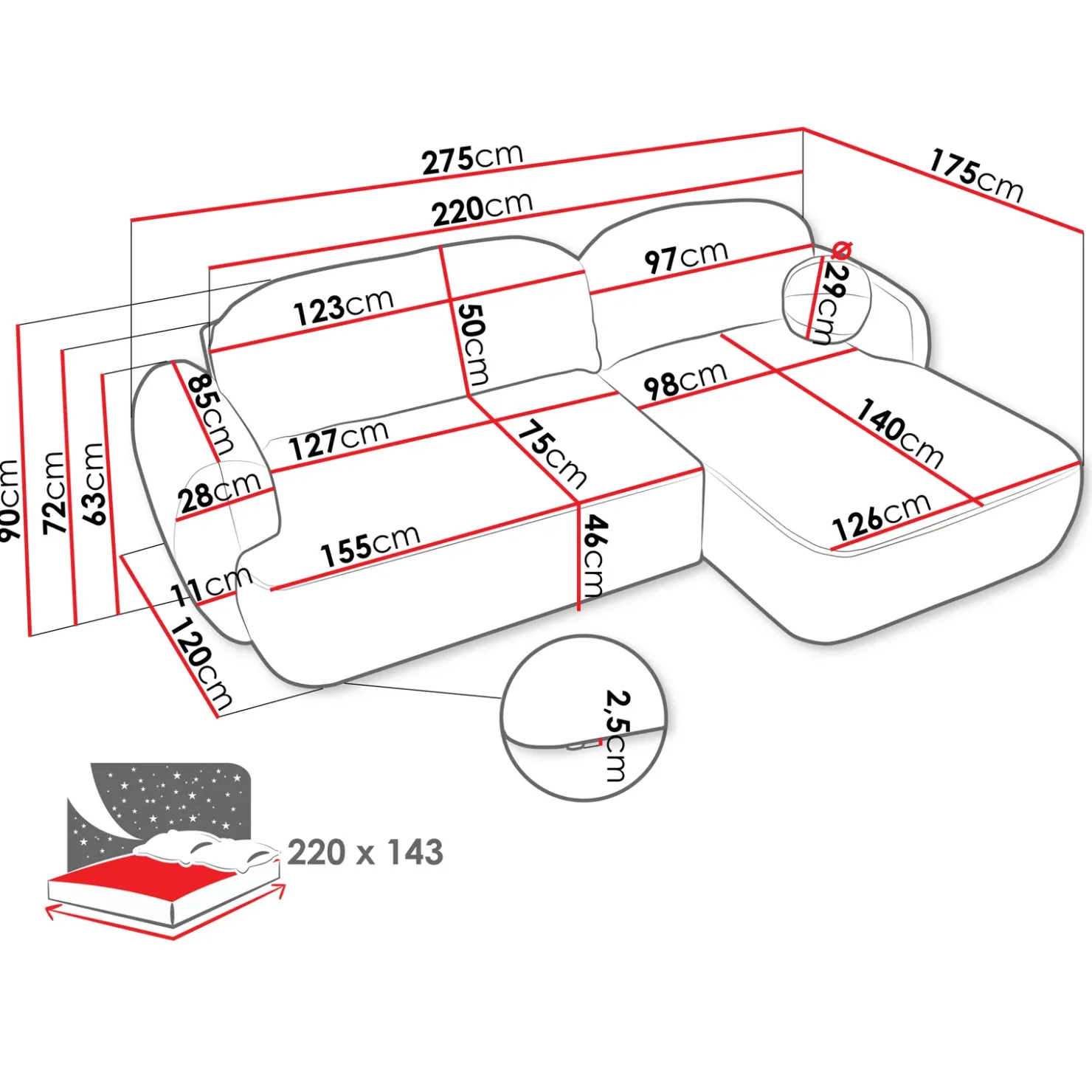 La sua configurazione con angolo fisso a sinistra lo rende ideale per ottimizzare gli spazi e creare una zona living accogliente e ben strutturata. Dotato di uno schienale reclinabile, il divano si trasforma facilmente in un letto, offrendo una soluzione pratica per ospitare amici o per godersi un momento di relax extra. Al suo interno è presente un box contenitore nascosto, perfetto per riporre coperte, cuscini o oggetti d’uso quotidiano, mantenendo lo spazio sempre ordinato e funzionale.