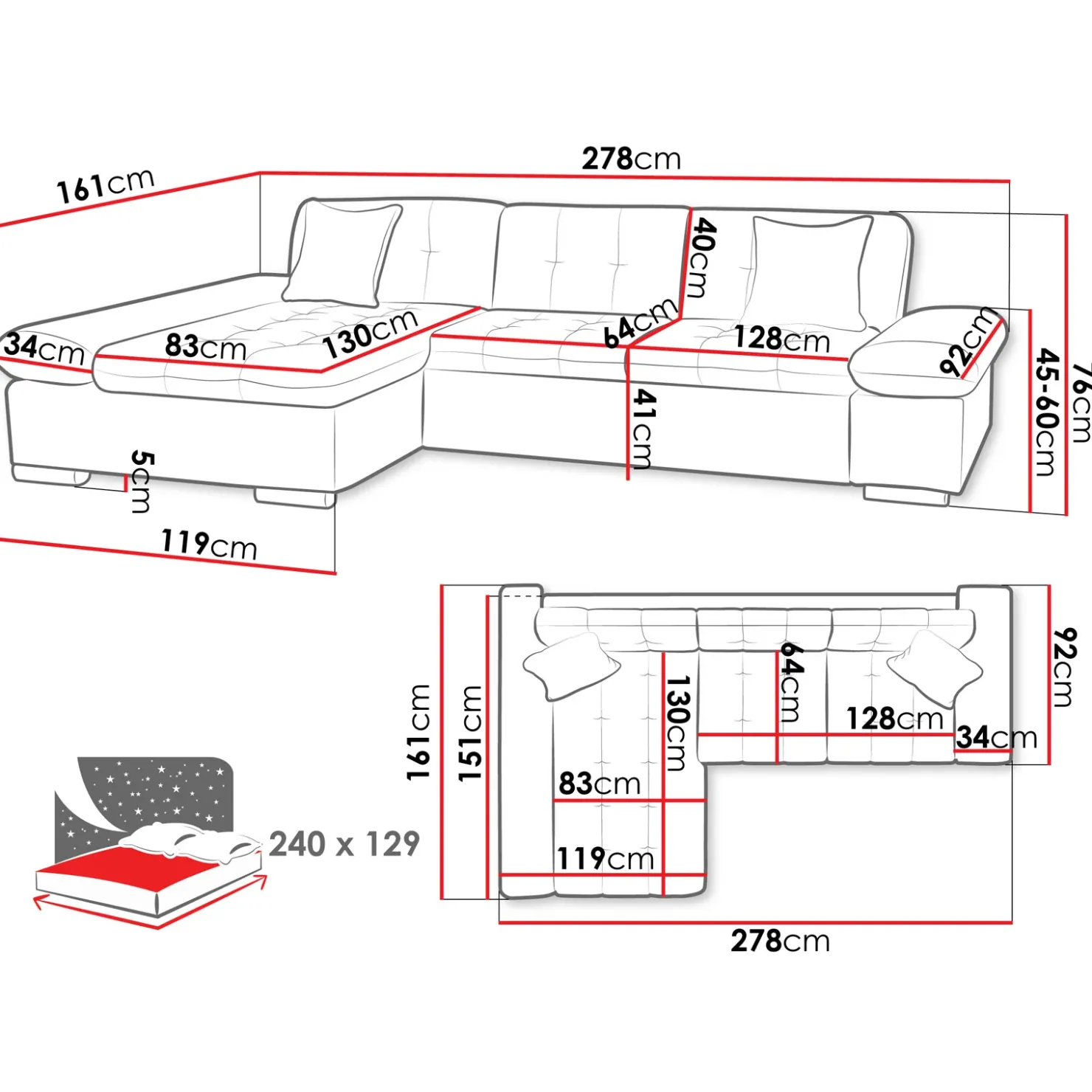 Completano il tutto i cuscini inclusi, coordinati nel colore e nel design, per un tocco di accoglienza e armonia. Il divano letto con angolo a sinistra Zenia è la scelta ideale per chi cerca versatilità, comfort e un’estetica curata nei dettagli