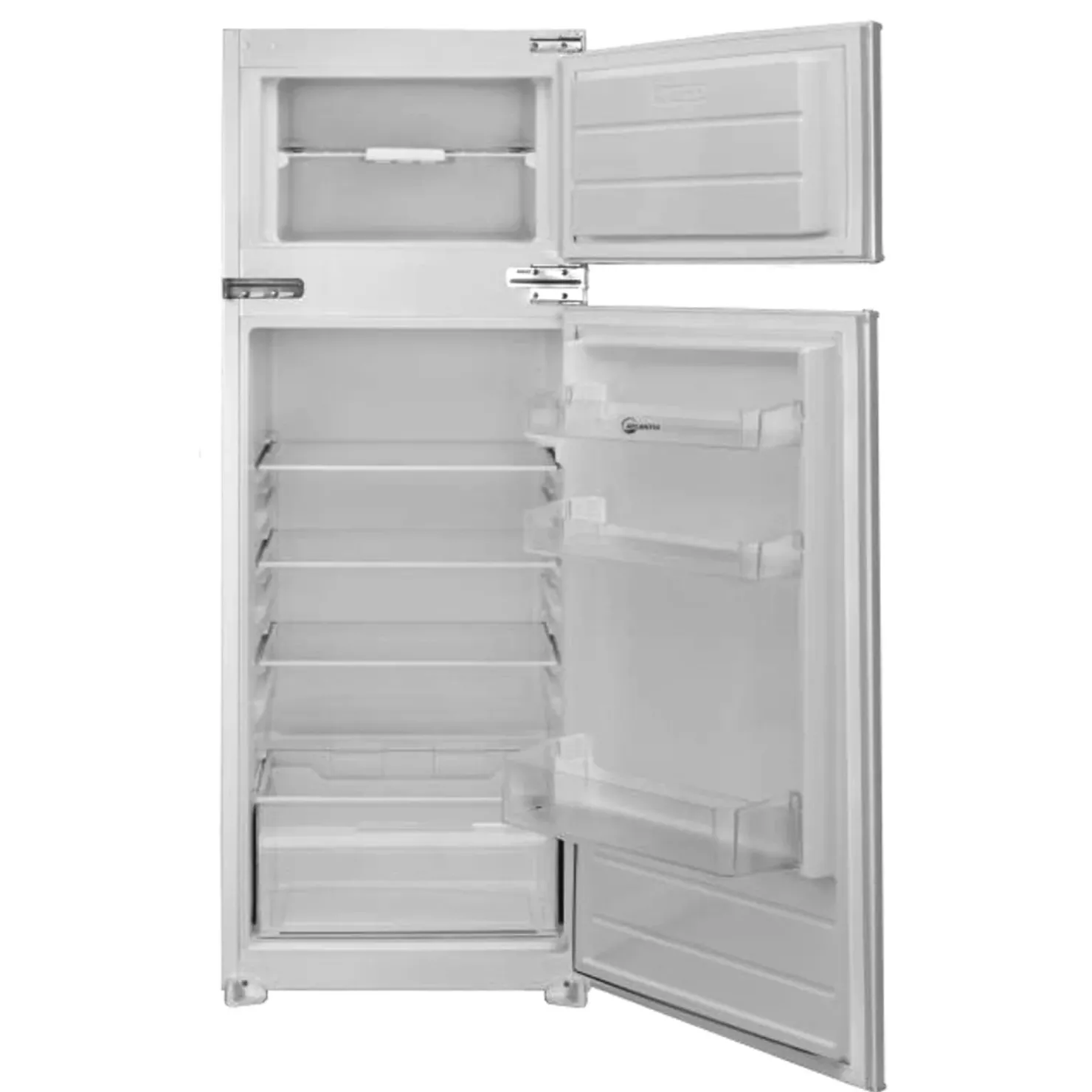 Frigorifero Atlantic da 230L a incasso con doppia porta, in colore bianco. Ottimizzato per adattarsi a cucine integrate, offre un comparto frigorifero spazioso e un congelatore separato, con ripiani regolabili e cassetti per frutta e verdura. Il design elegante e la finitura bianca lo rendono perfetto per armonizzarsi con qualsiasi arredamento, garantendo al contempo un’efficiente conservazione degli alimenti.