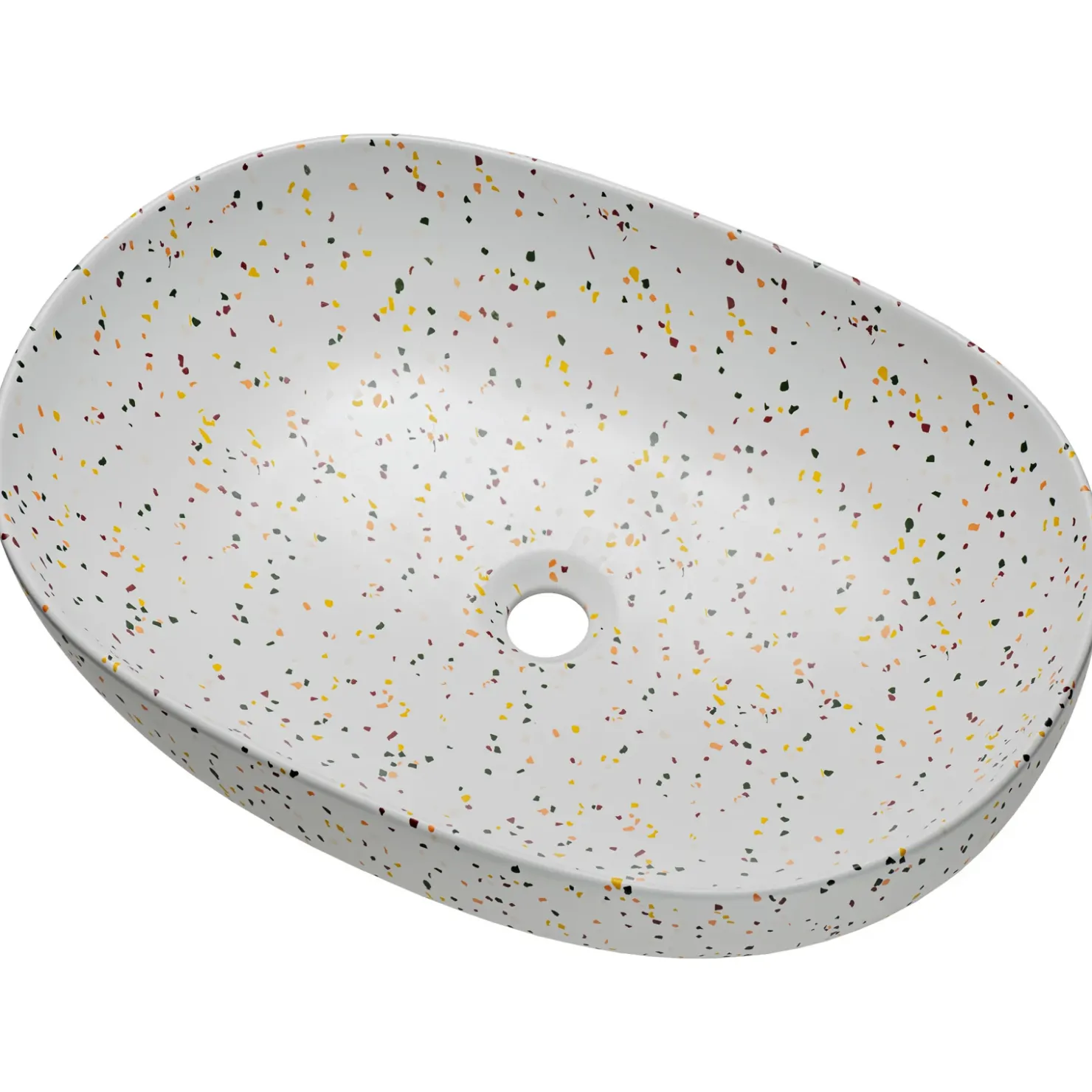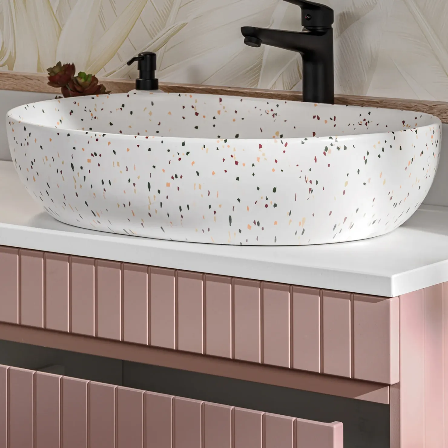 Il lavabo da appoggio Pollok è la scelta perfetta per chi vuole portare colore, stile e leggerezza nel proprio bagno. La sua forma ovale e armoniosa si unisce a una spumeggiante finitura, capace di donare freschezza e originalità all’ambiente, senza rinunciare all’eleganza.