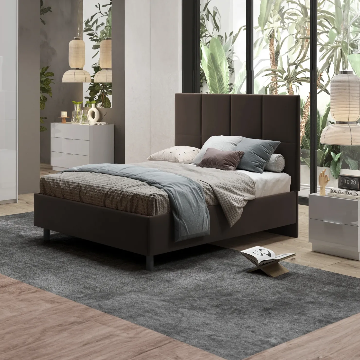 Garnero Arredamenti Letto contenitore matrimoniale 160×195 imbottito tessuto marrone SleepSolutions Tessuto Velluto Marrone Best