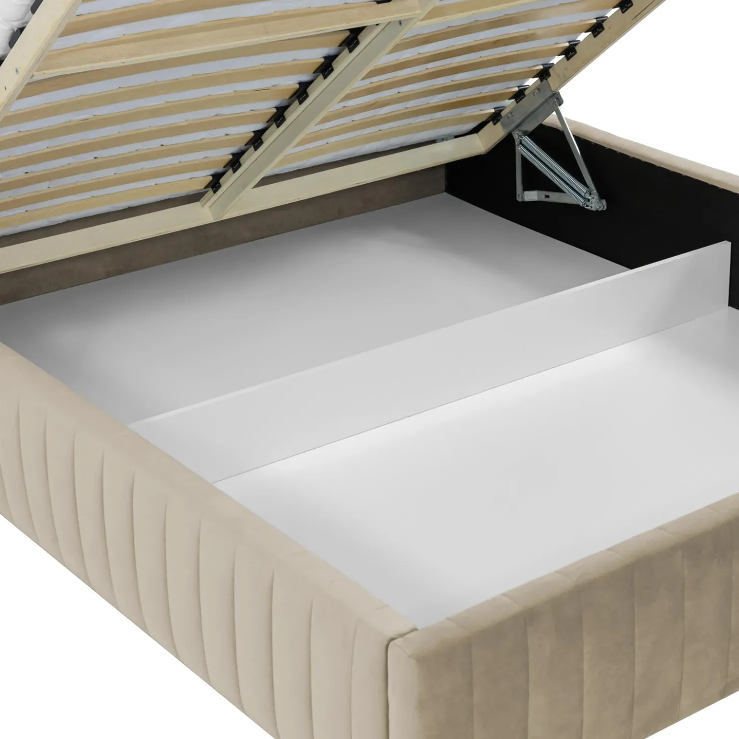 Letto contenitore matrimoniale oversize 180×200 imbottito velluto beige Poffi