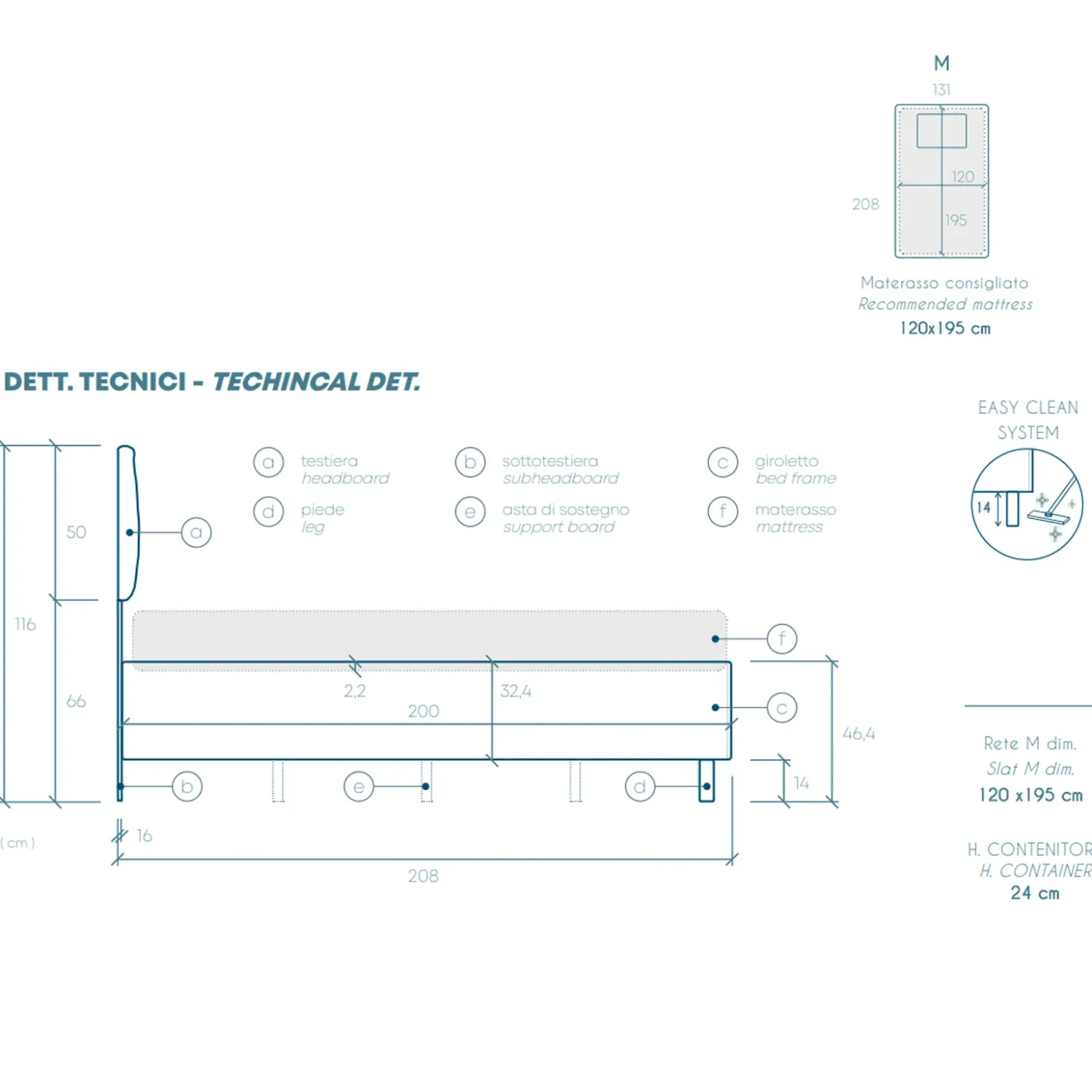 | Dimensione materasso compatibile | 120 x 195 cm |