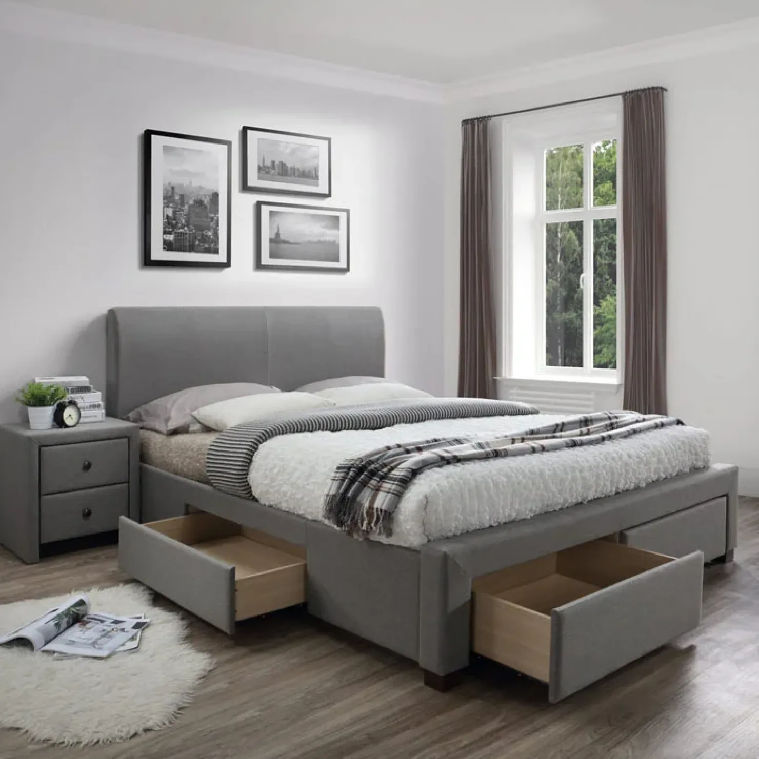Garnero Arredamenti Letto matrimoniale in tessuto con cassettoni 160x200cm Mestre Gihome® Grigio Best