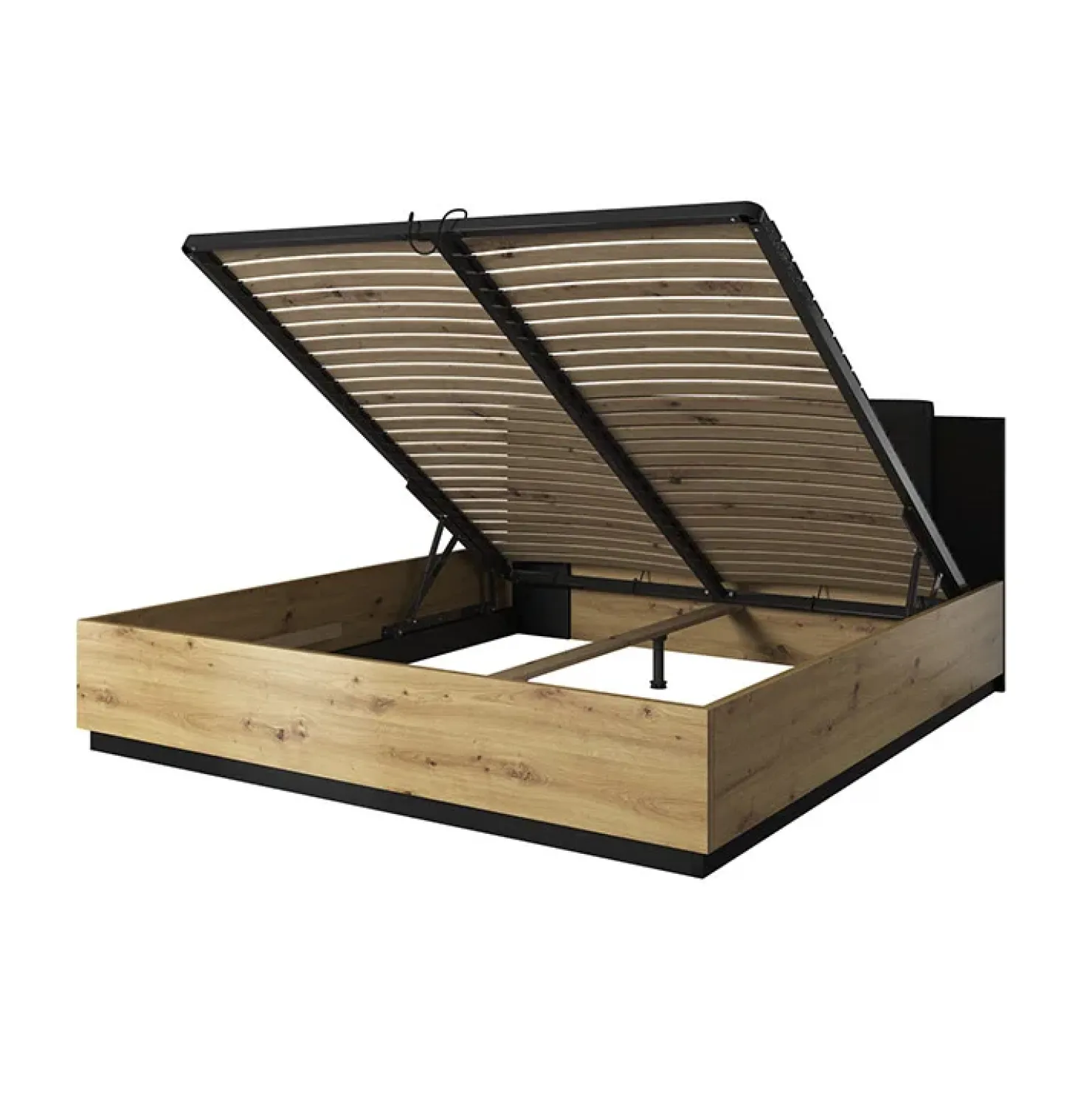 Letto matrimoniale 180x200cm con rete contenitore rovere nero Vulcano