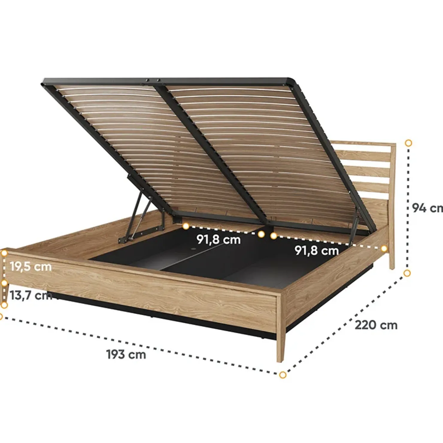 Il letto oversize contenitore 180×200 cm della collezione Luna è progettato per fornire un supporto eccellente al materasso, garantendo così una qualità del sonno superiore. La robusta struttura in legno e il telaio resistente assicurano stabilità e lunga durata nel tempo, mentre l’eleganza del design aggiunge un tocco di classe alla tua camera da letto.