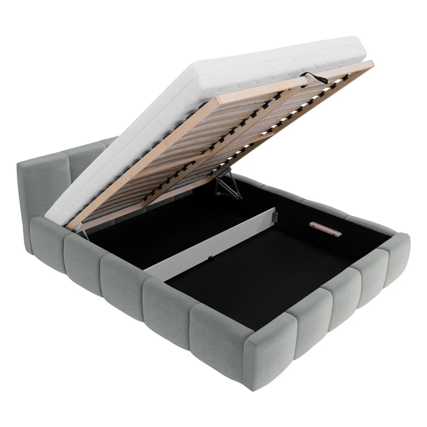 Letto oversize 180x200cm con rete contenitore imbottito azzurro grigio Aluna
