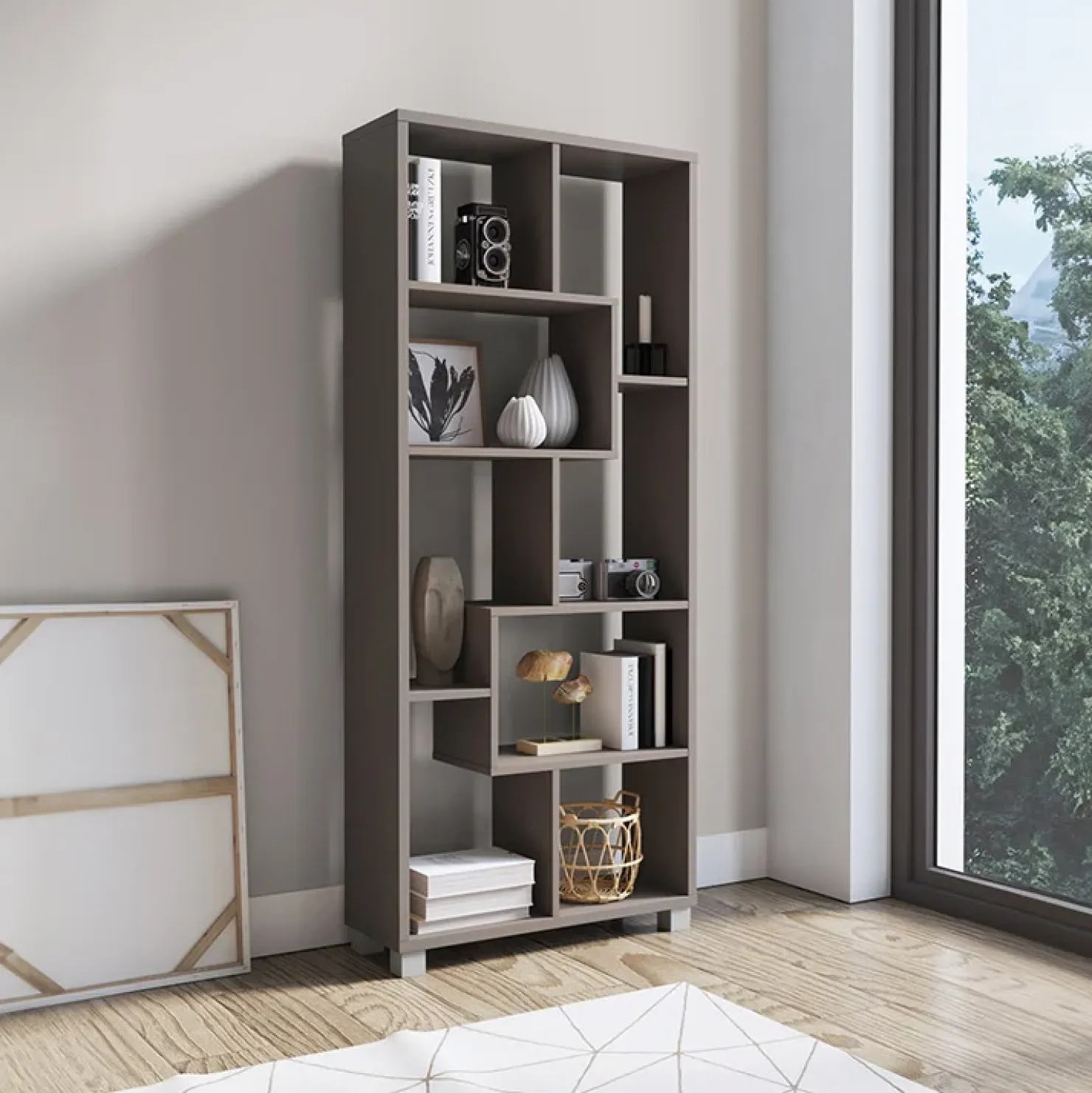 Libreria moderna soggiorno multiposizione grigio Eliza