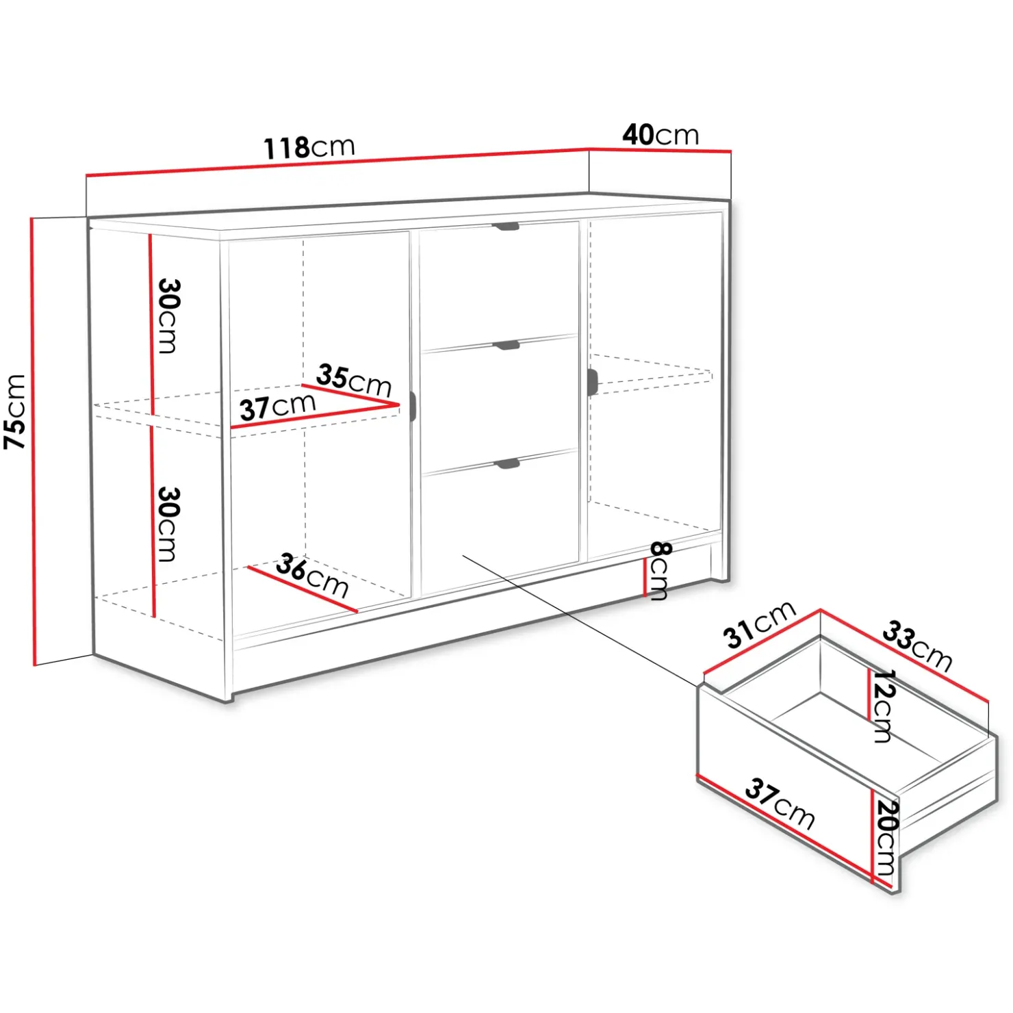 | Dimensioni | L.118 x H.75 x P.40 cm |