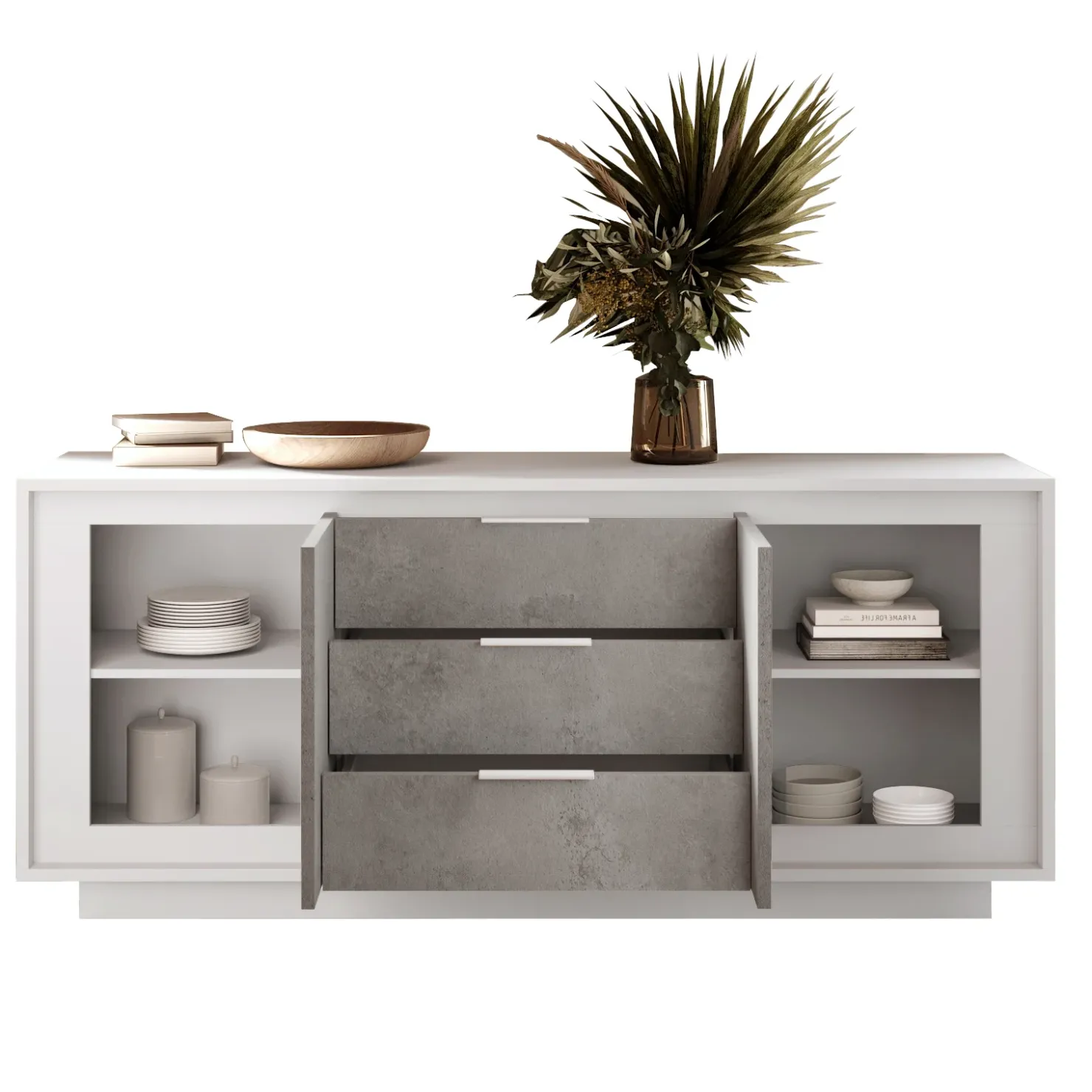 Garnero Arredamenti Madia 180x80h cm 3 cassetti 2 ante moderna bianco opaco grigio cemento Deluxe Cemento – Bianco opaco
