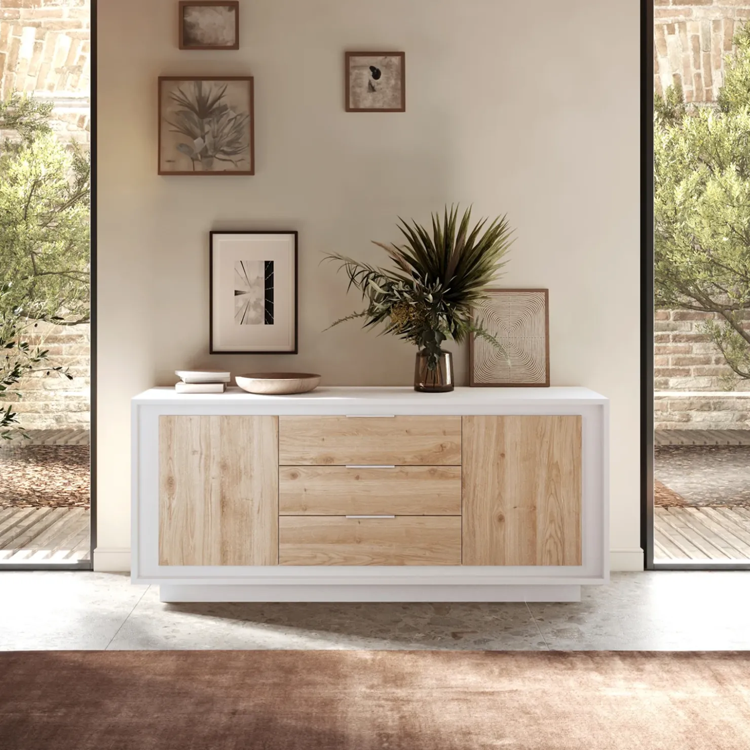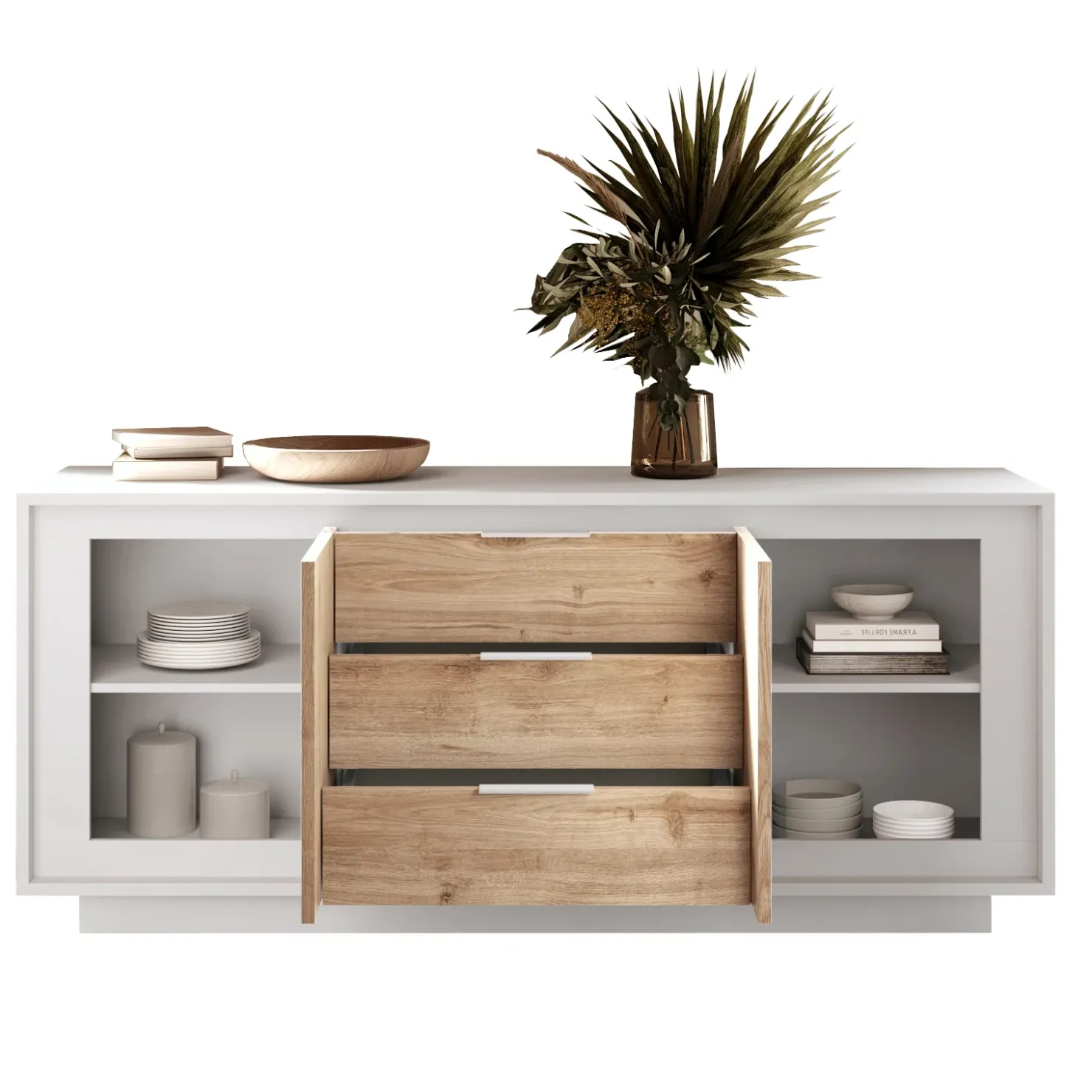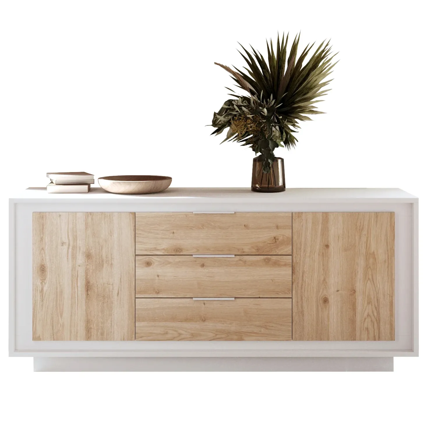 Garnero Arredamenti Madia 180x80h cm 3 cassetti 2 ante moderna bianco opaco rovere chiaro Deluxe Rovere – Bianco opaco