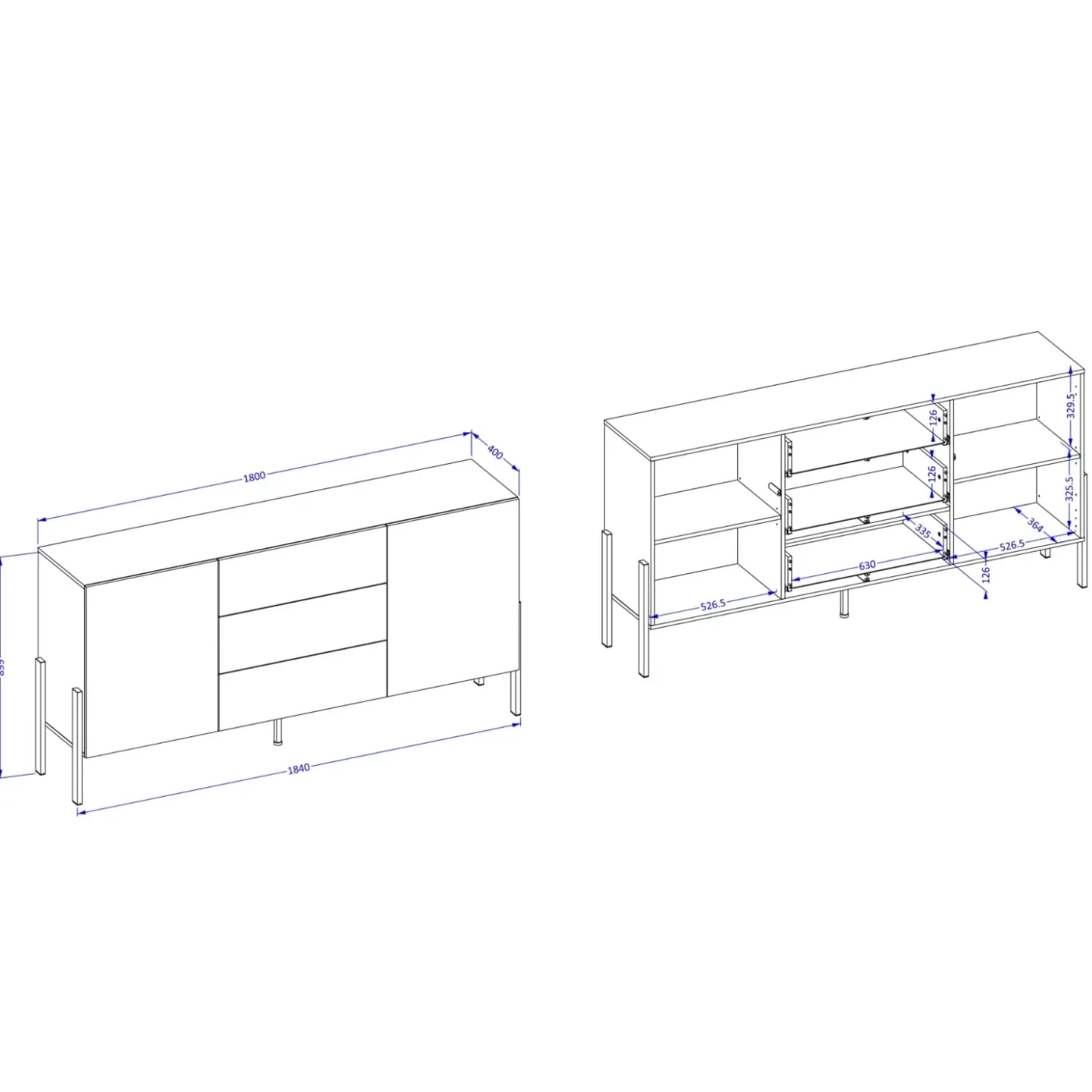 Madia moderna 180x90cm 2 ante 3 cassetti beige Simple