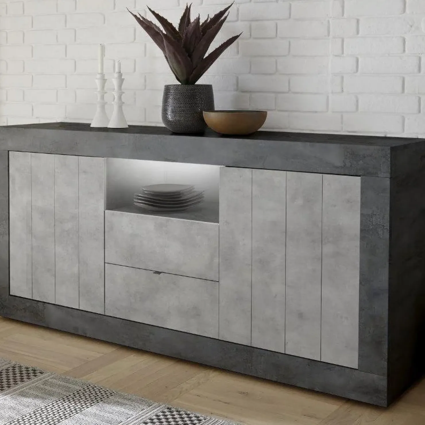 Madia moderna 2 ante 2 cassetti 184x86cm ossido cemento Florena